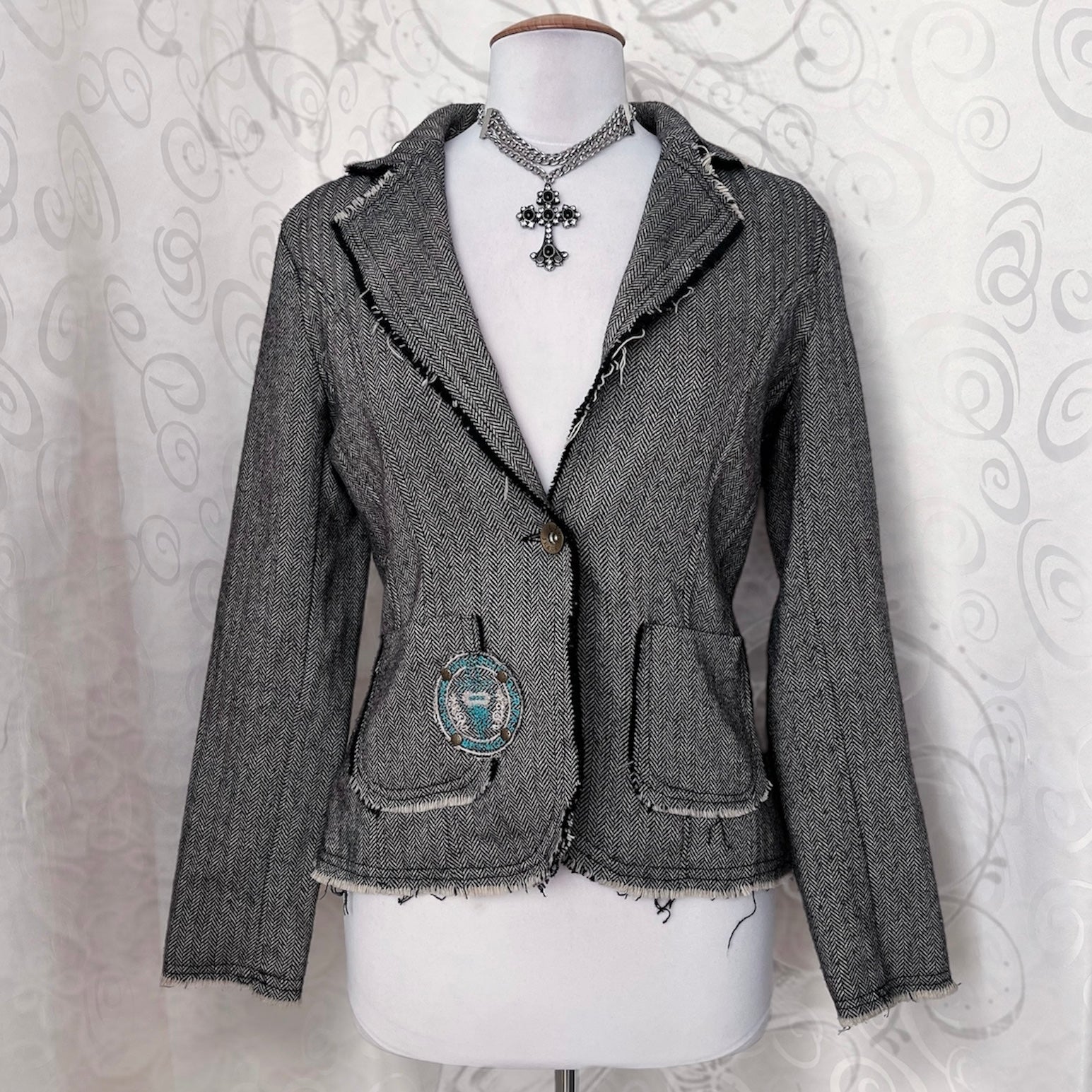 00’s Dark Academia light blazer with iconic Y2K embroidery back details 💀👑