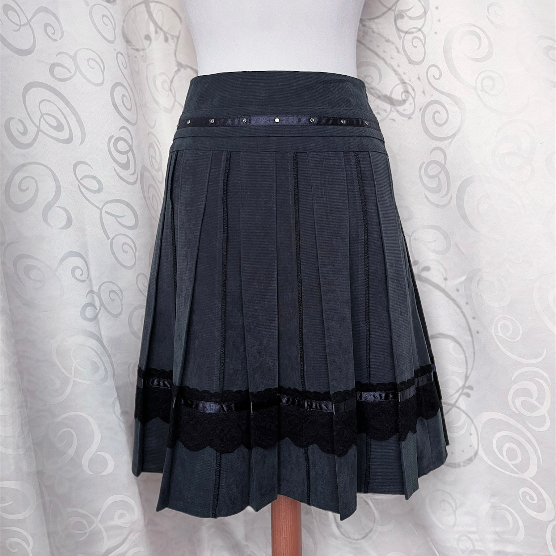 00’s dark coquette grey midi pleated skirt with lace & satin details 🌀🕷️