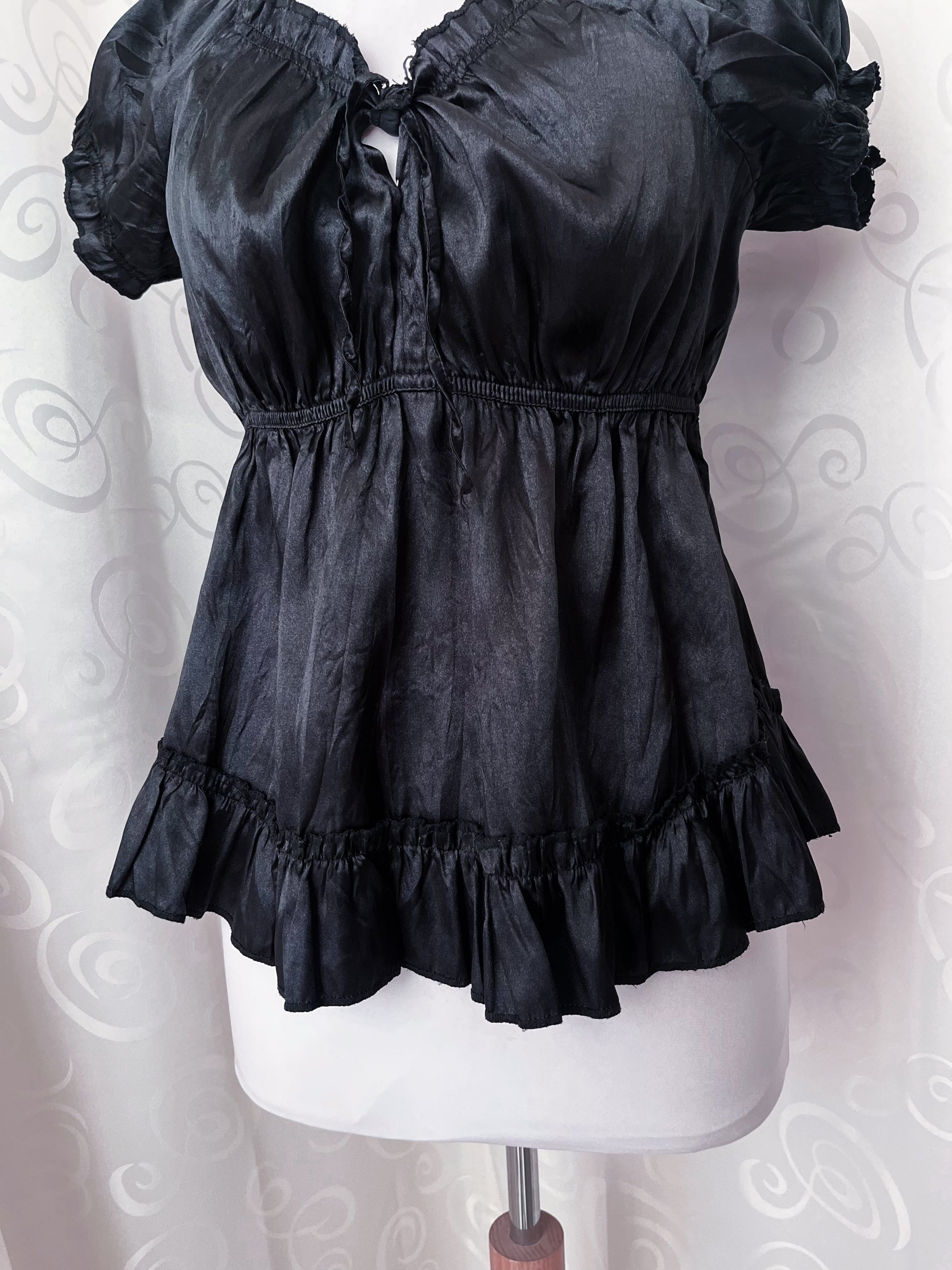 00’s Dark Coquette/Horrir protagonist black satin top 🕷️