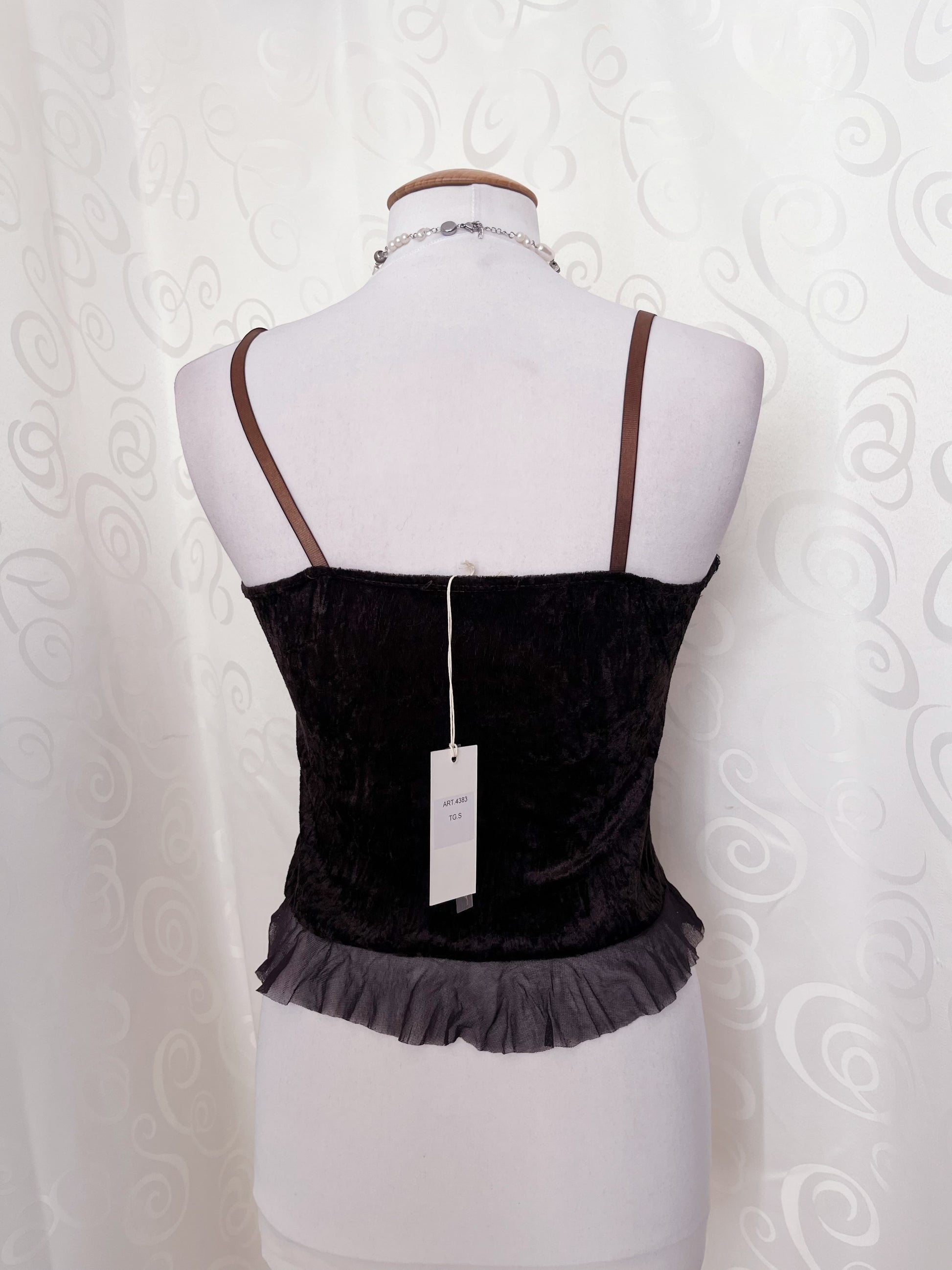 00’s deadstock whimsy fairy brown top with velvet, sequin & tulle detail 🌀🐌