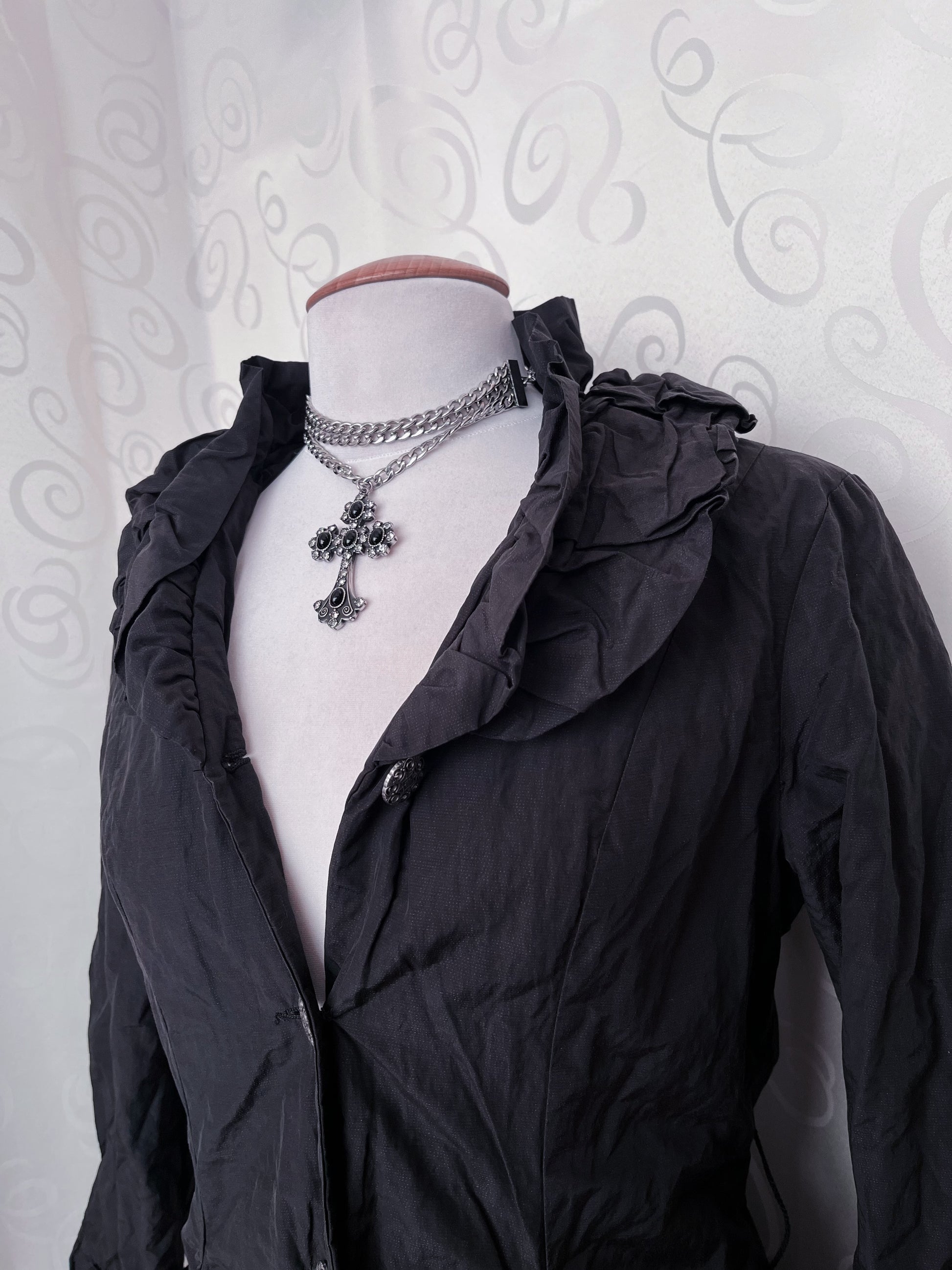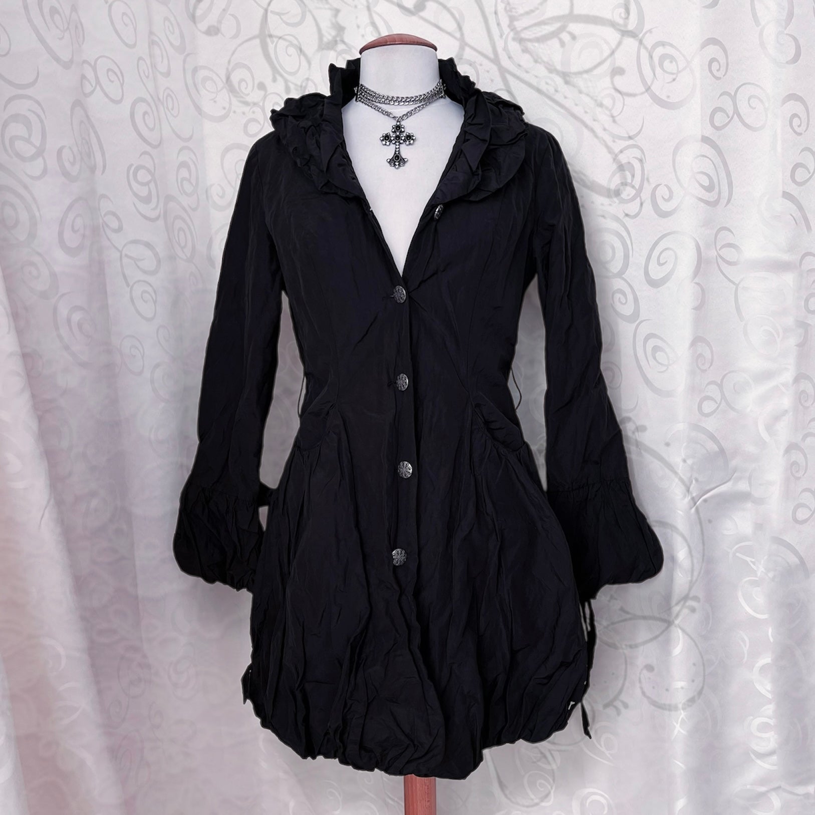 00’s Gothic / Jirai Kei light black coat with ruffle details 🌀🕷️