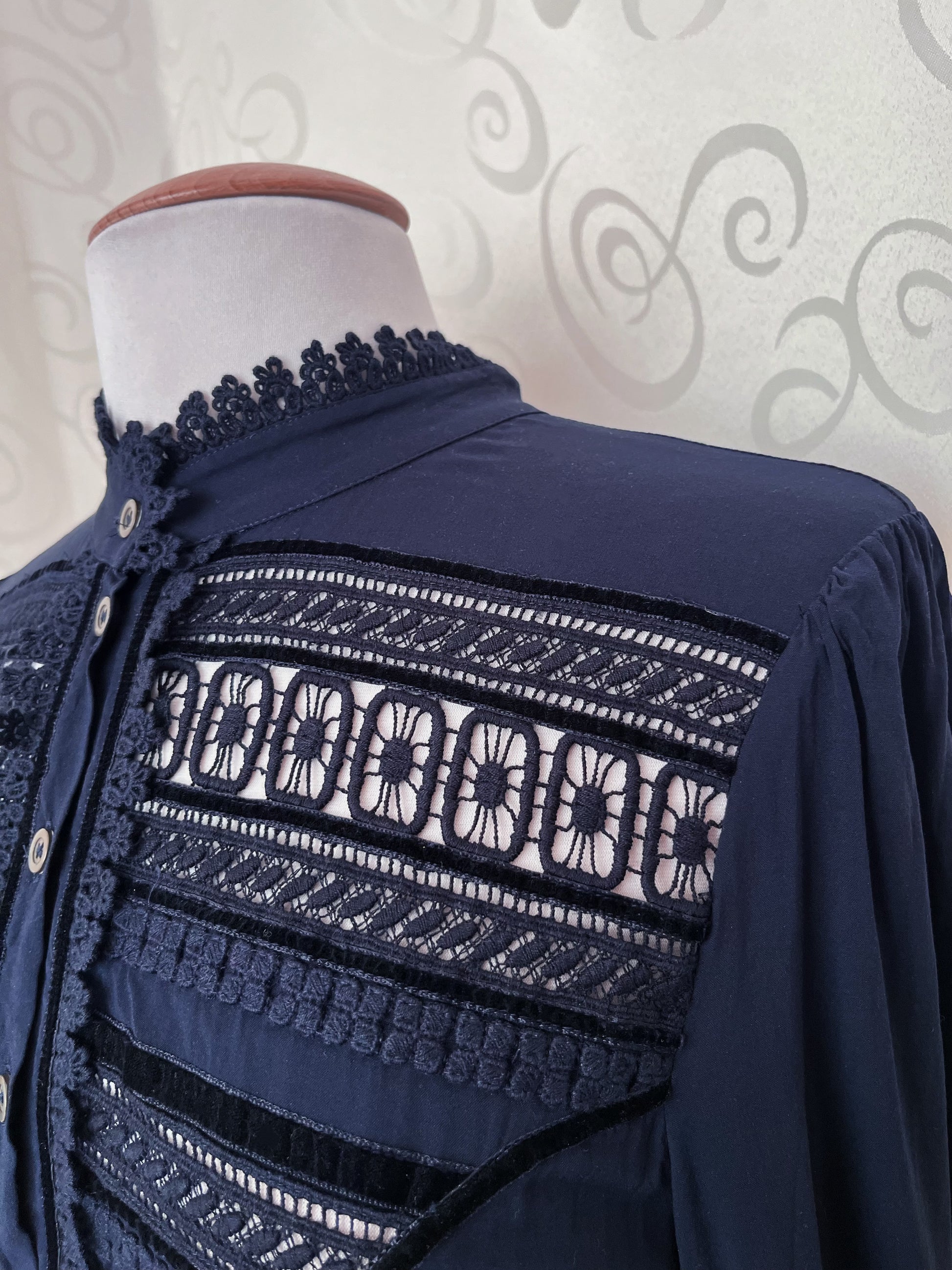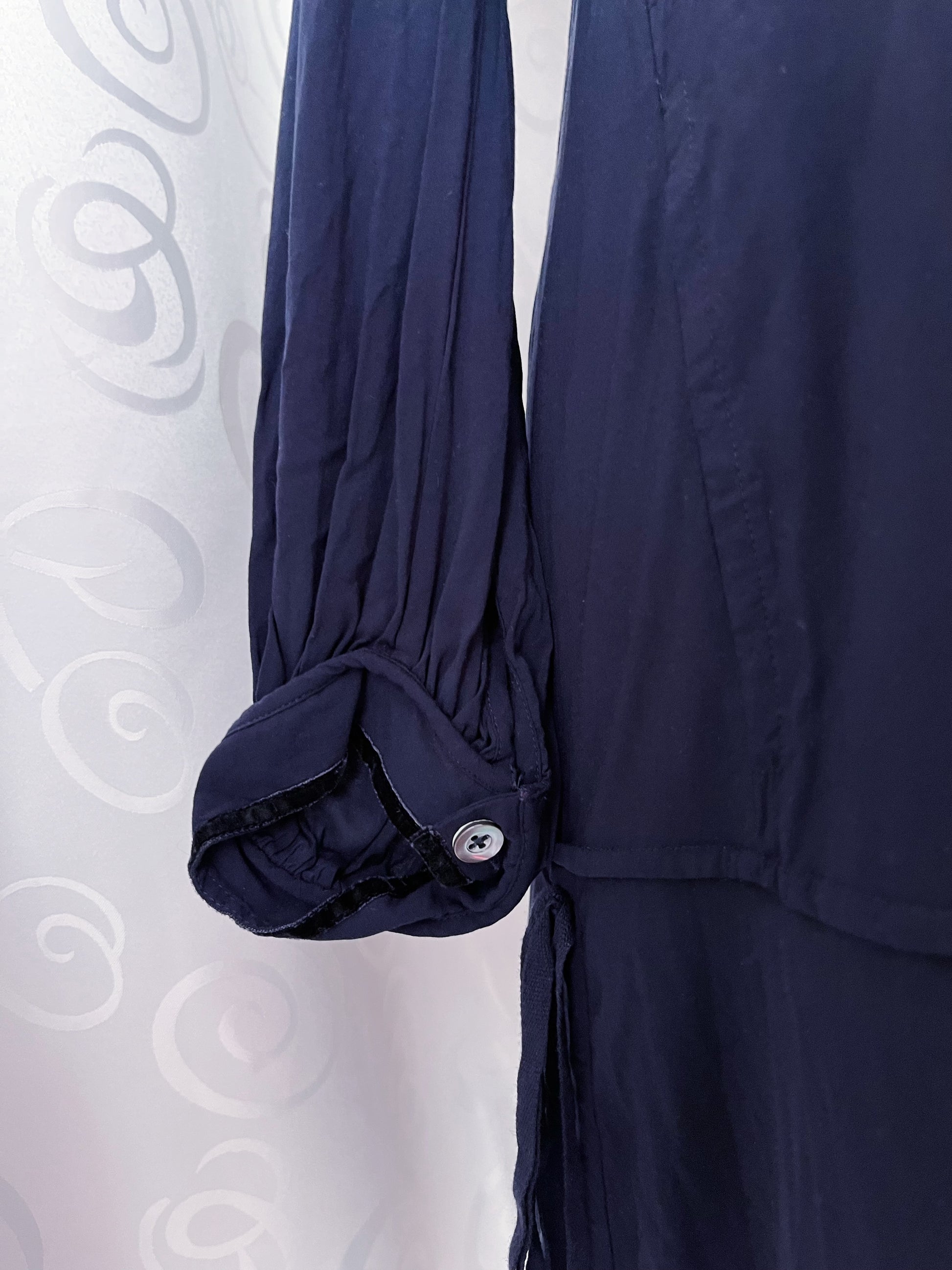 00’s gothic jirai kei navy dress with velvet details 🦇