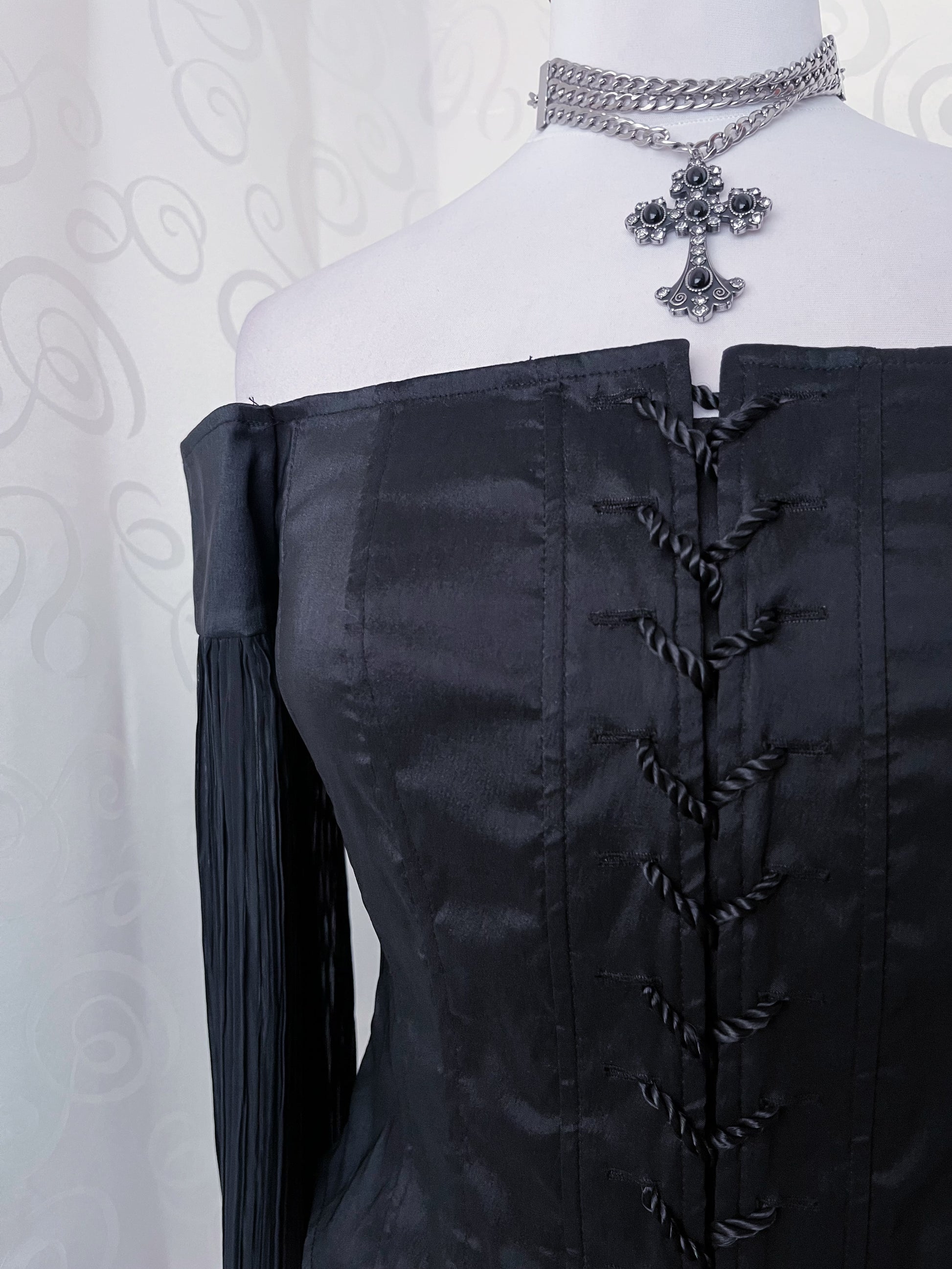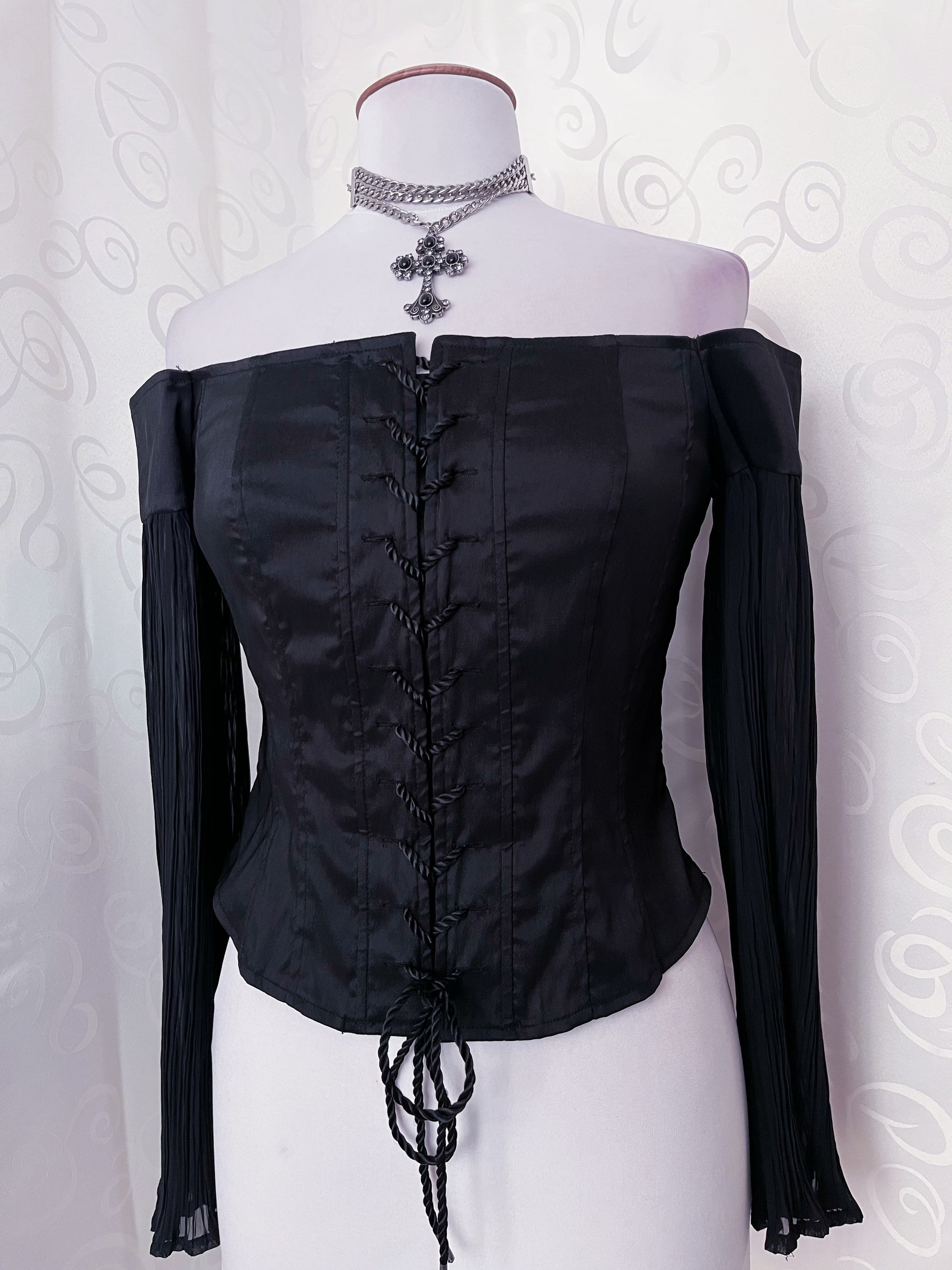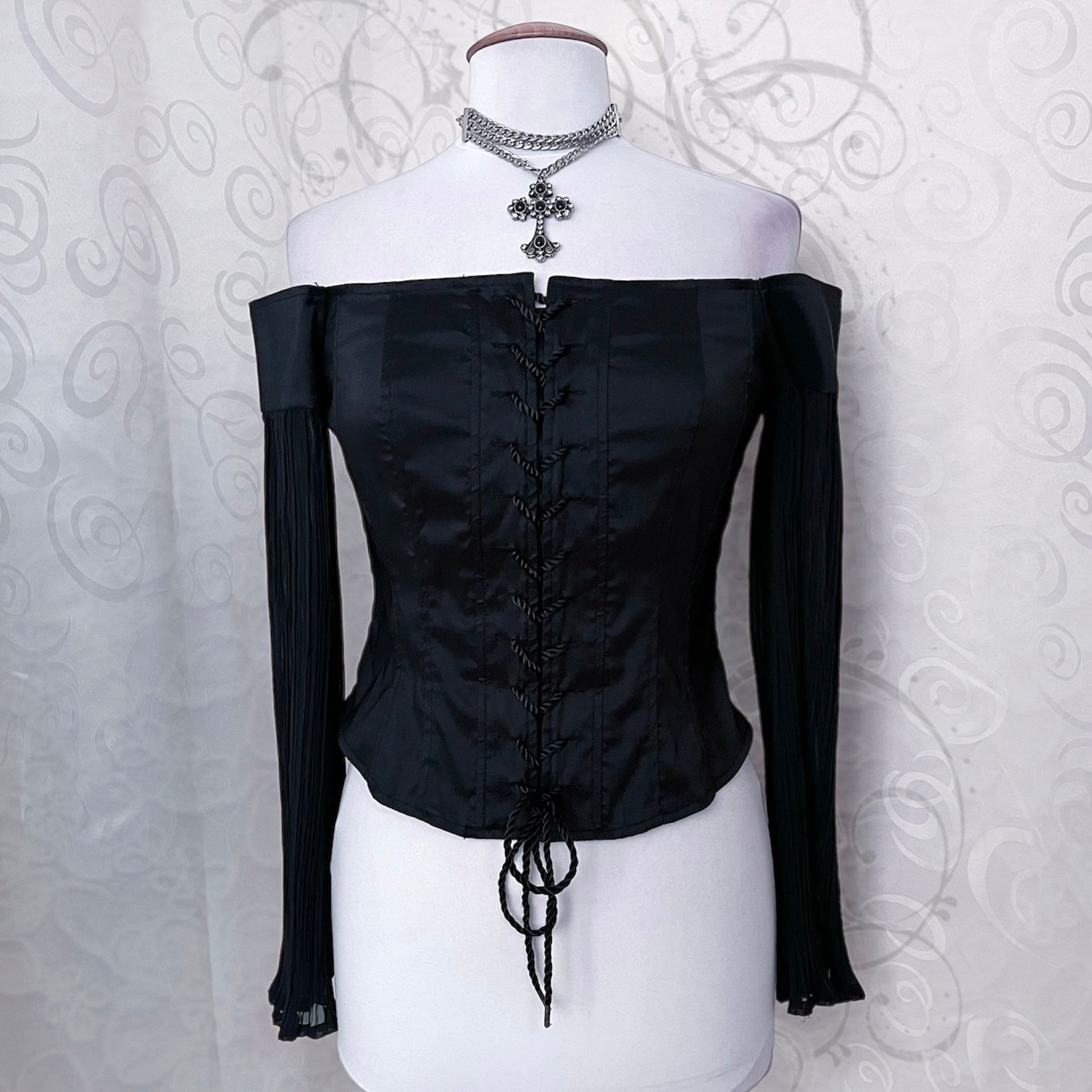 00’s Gothic Vivien Caron lace-up corset with mesh sleeves 🕷️