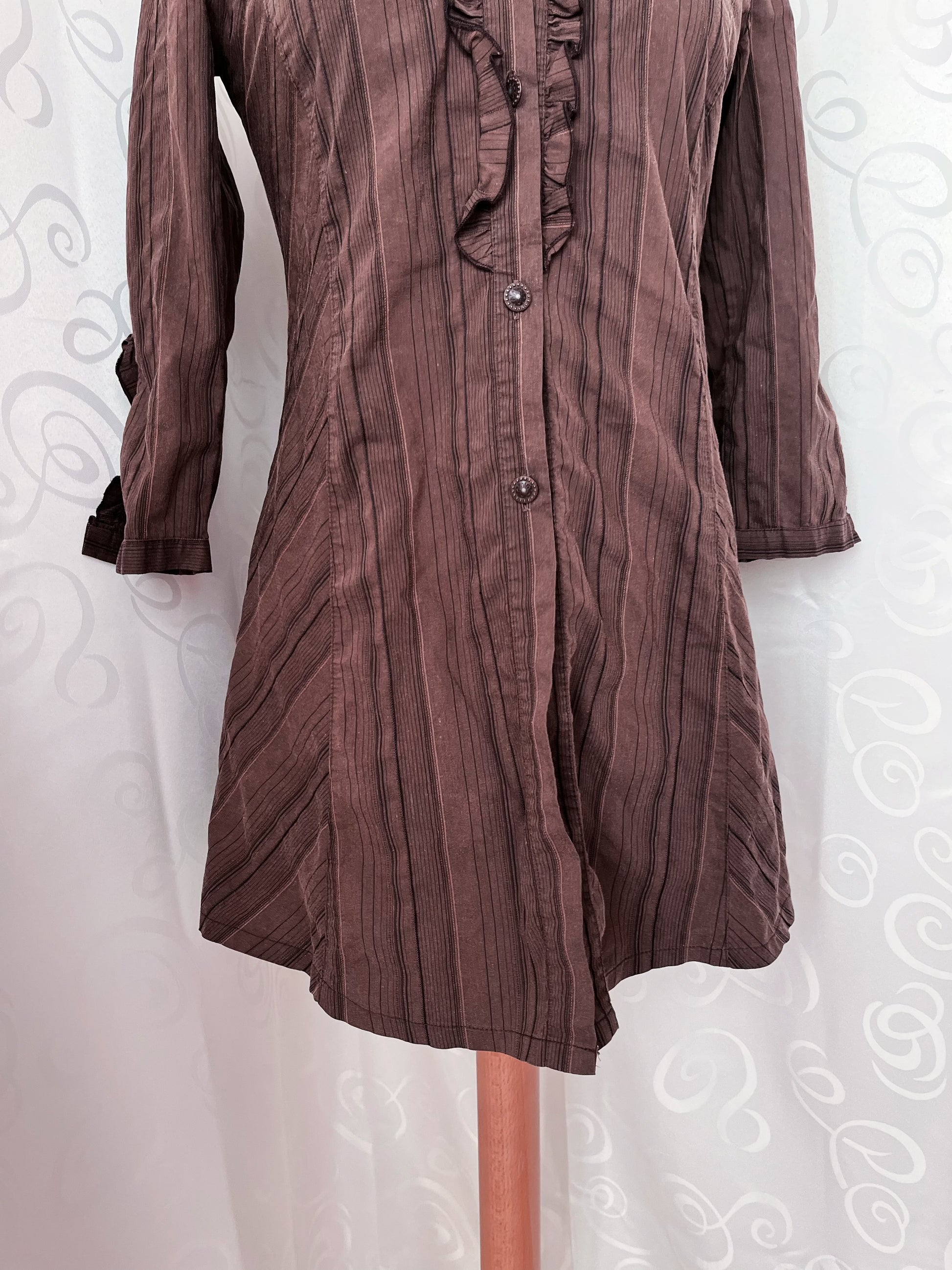 00’s Jirai Kei striped brown shirt with ruffles on the front & back 🐌
