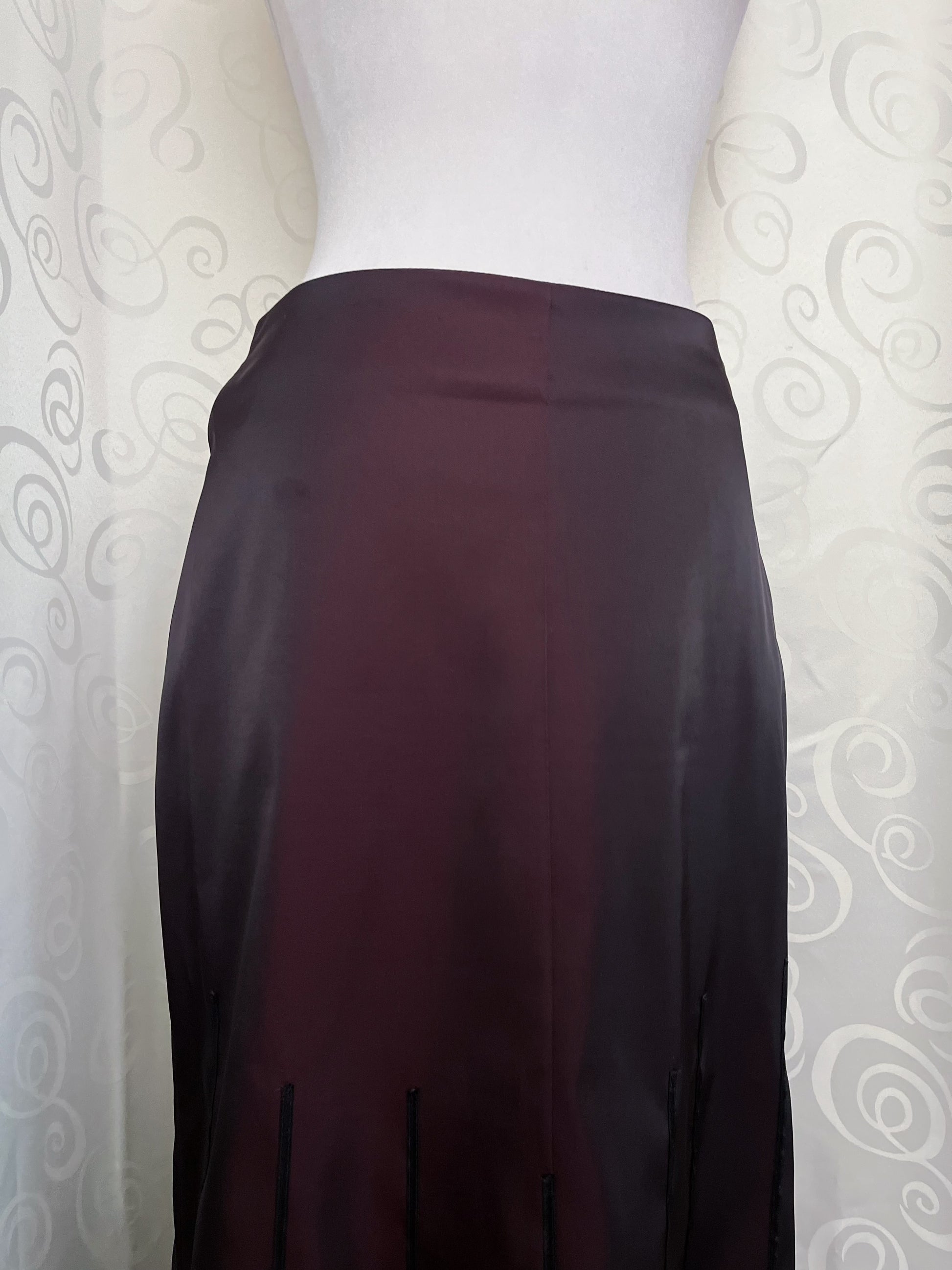 00’s Vampire Gothic dark burgundy satin skirt with lace & faux fur trim detail 🦇🥀