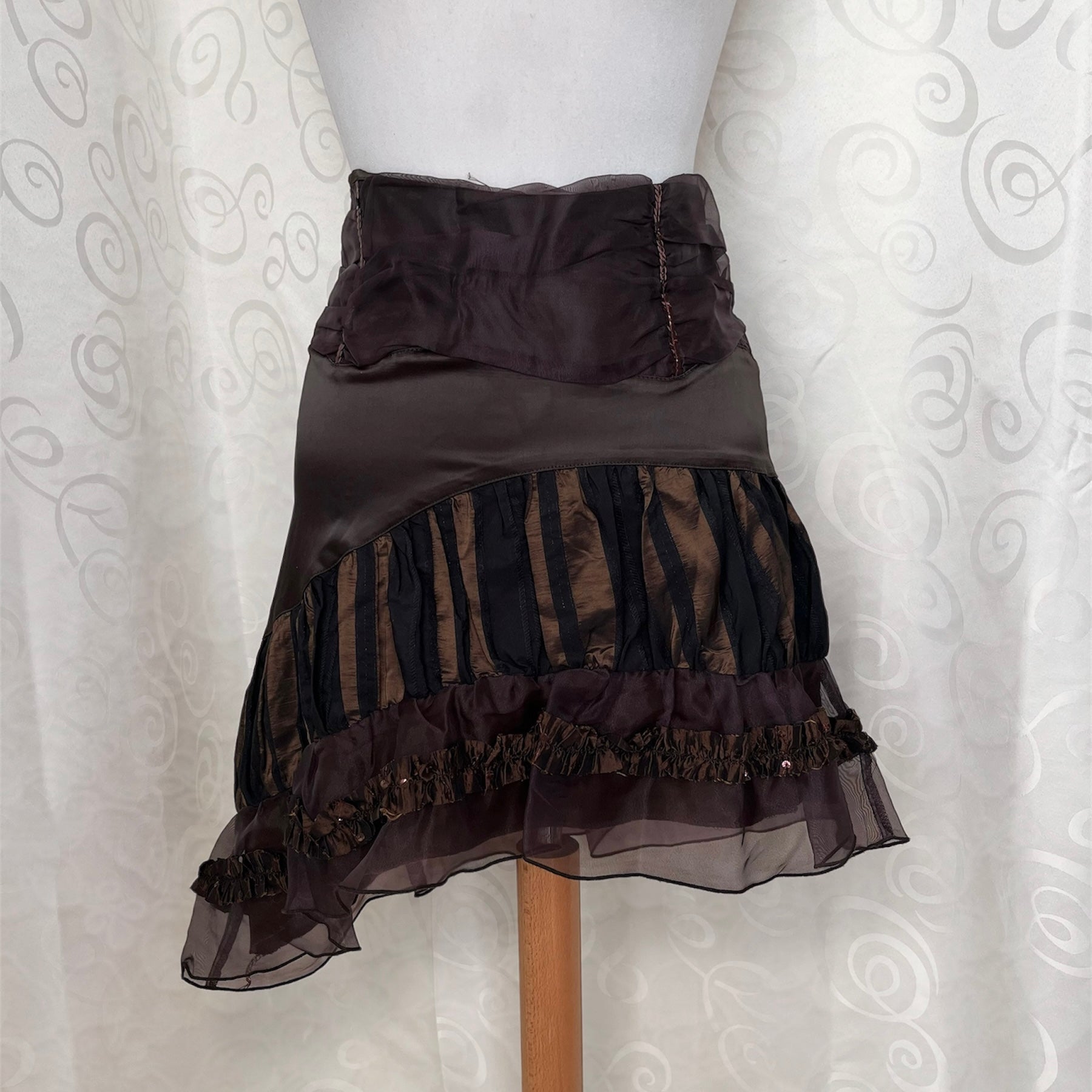 00’s whimsical asymmetrical brown skirt with tulle & sequin details 🧚🏾