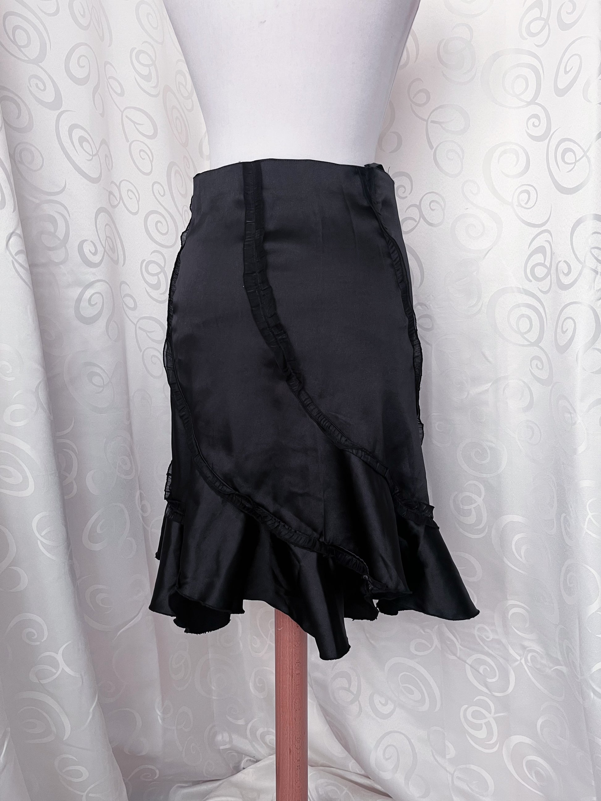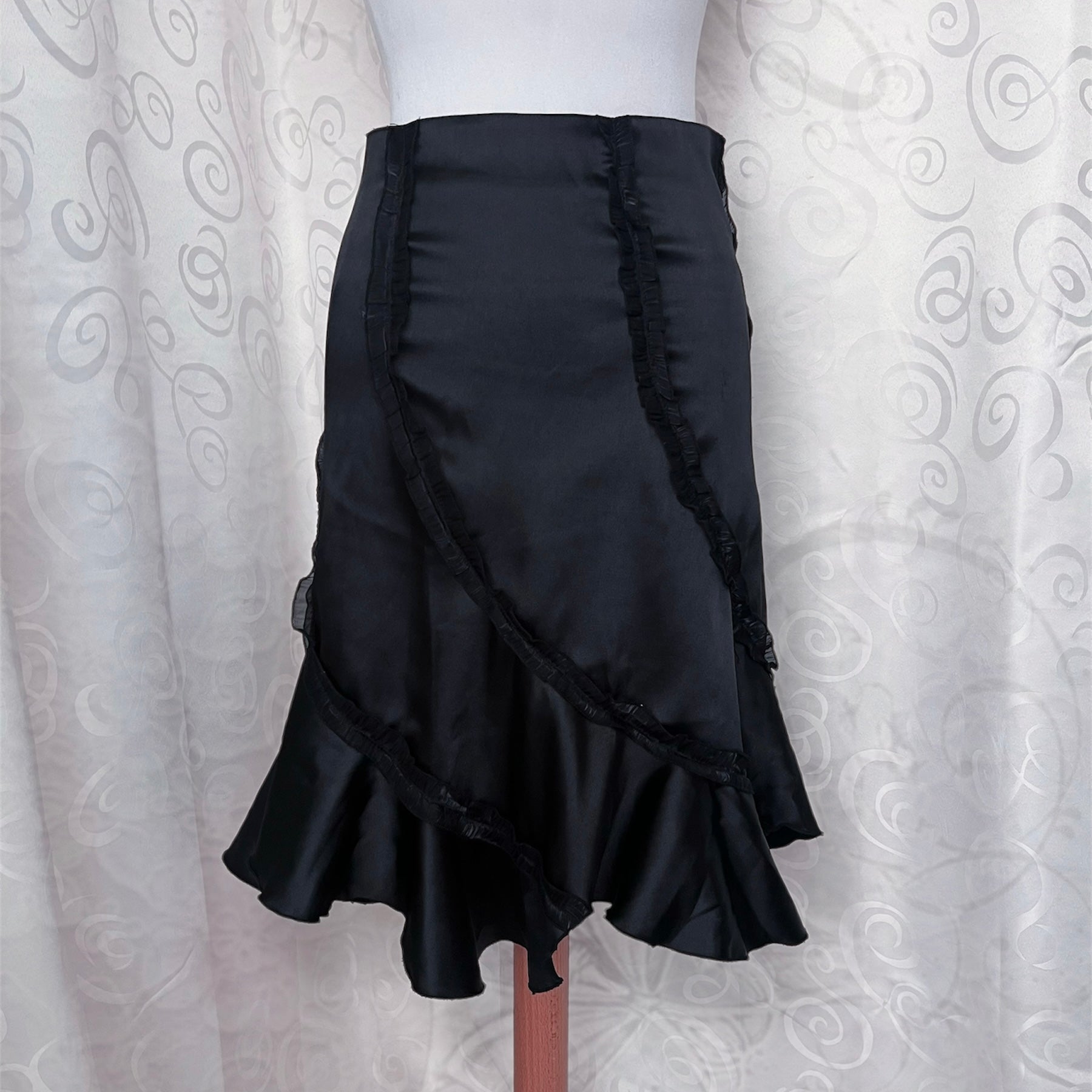 00’s whimsy asymmetrical black satin skirt 🦇🧚🏾