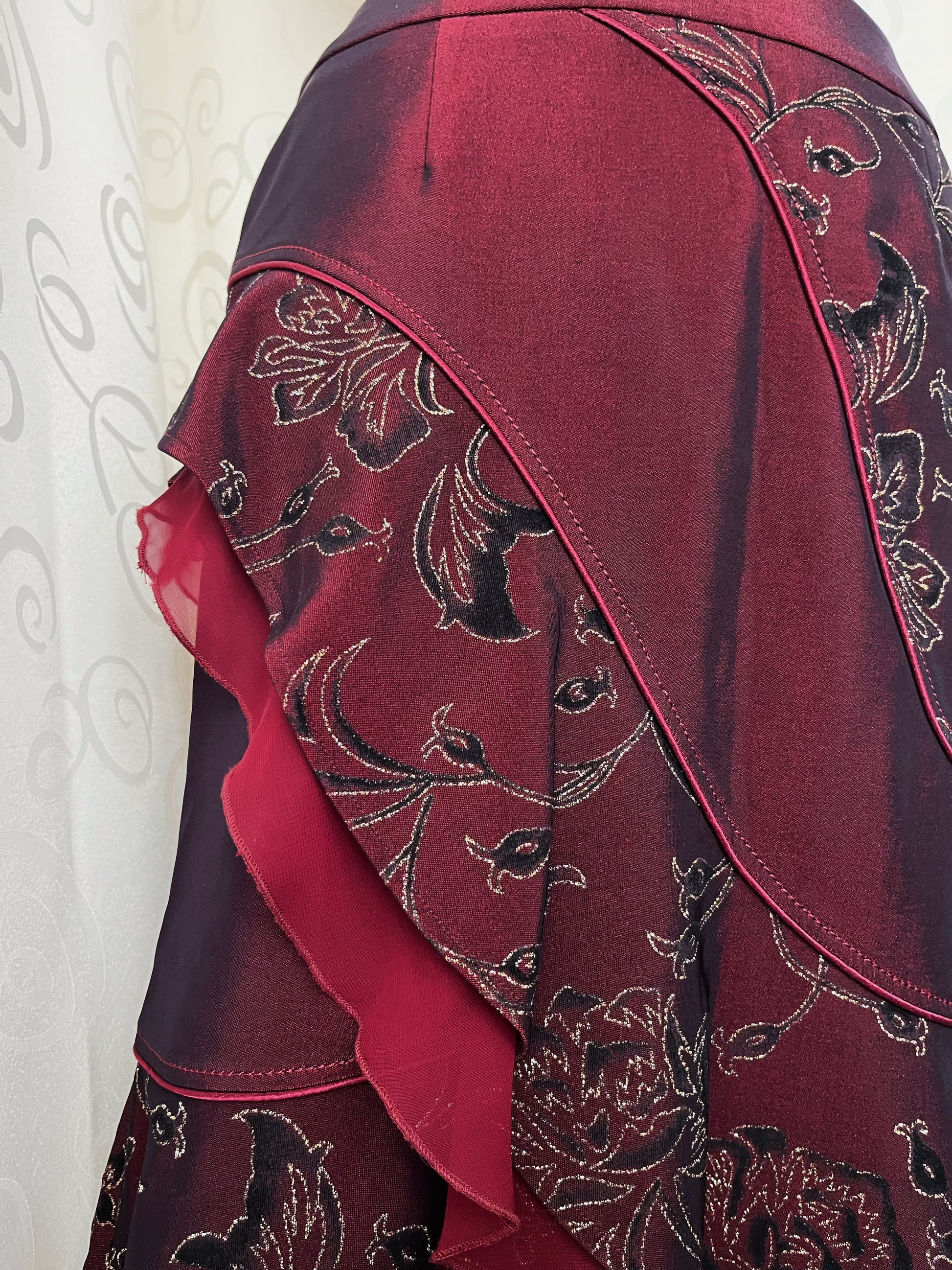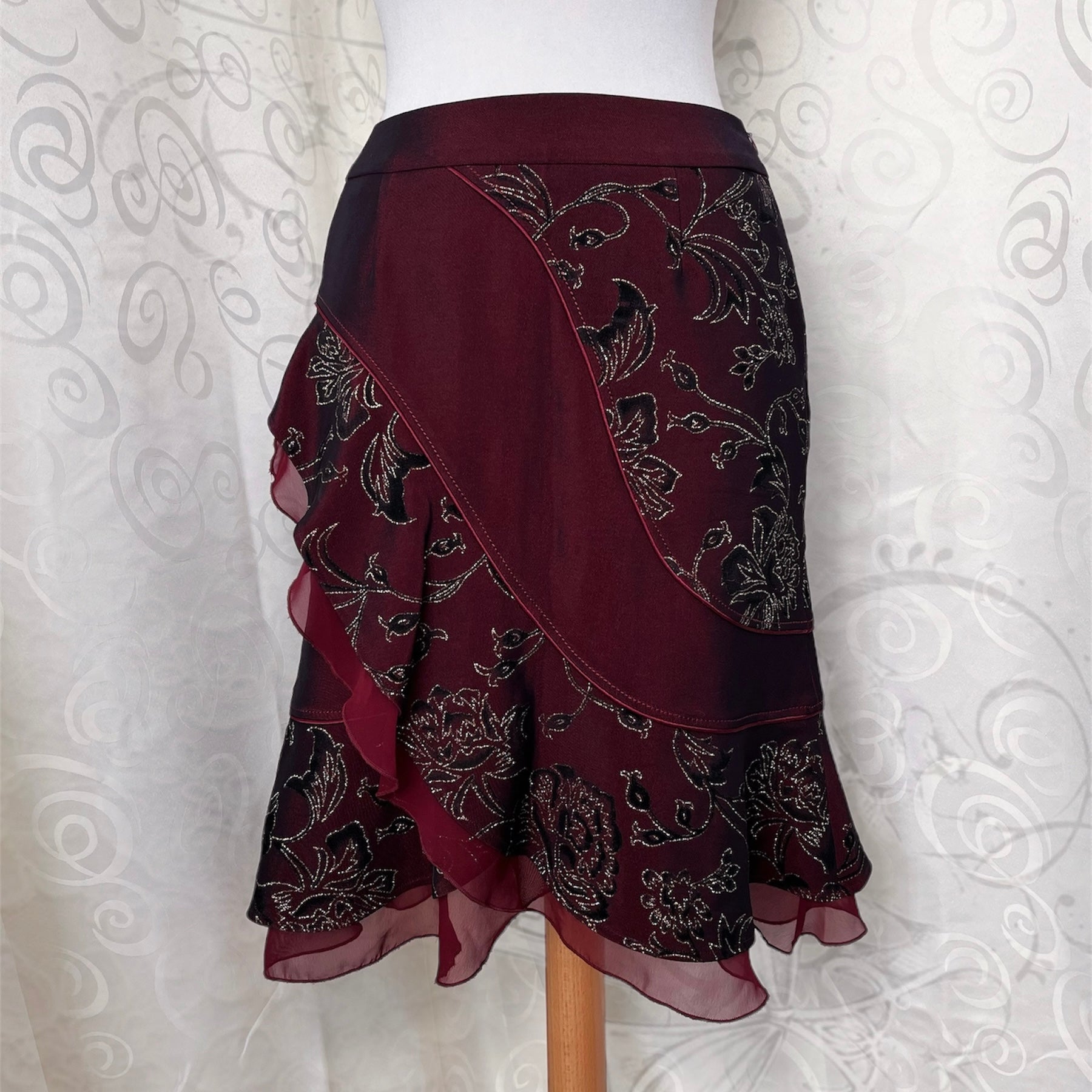 00’s whimsy fairy burgundy asymmetrical skirt with embroidered details 🫀⚜️