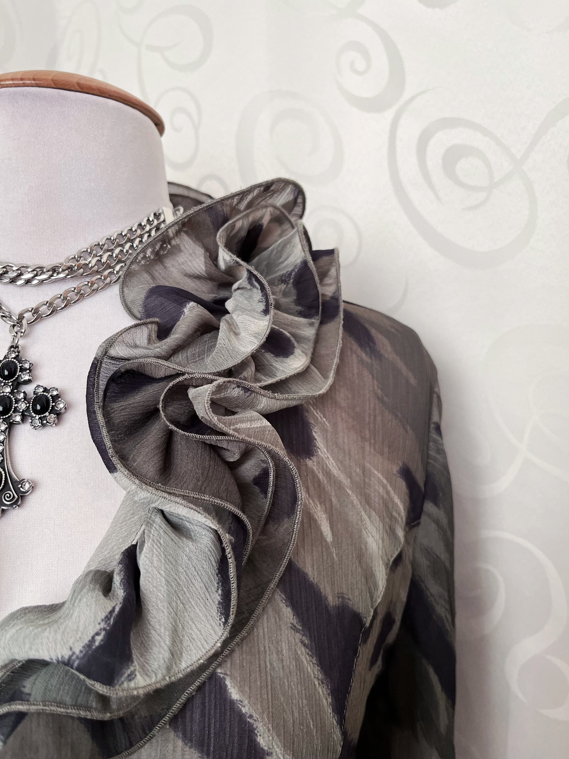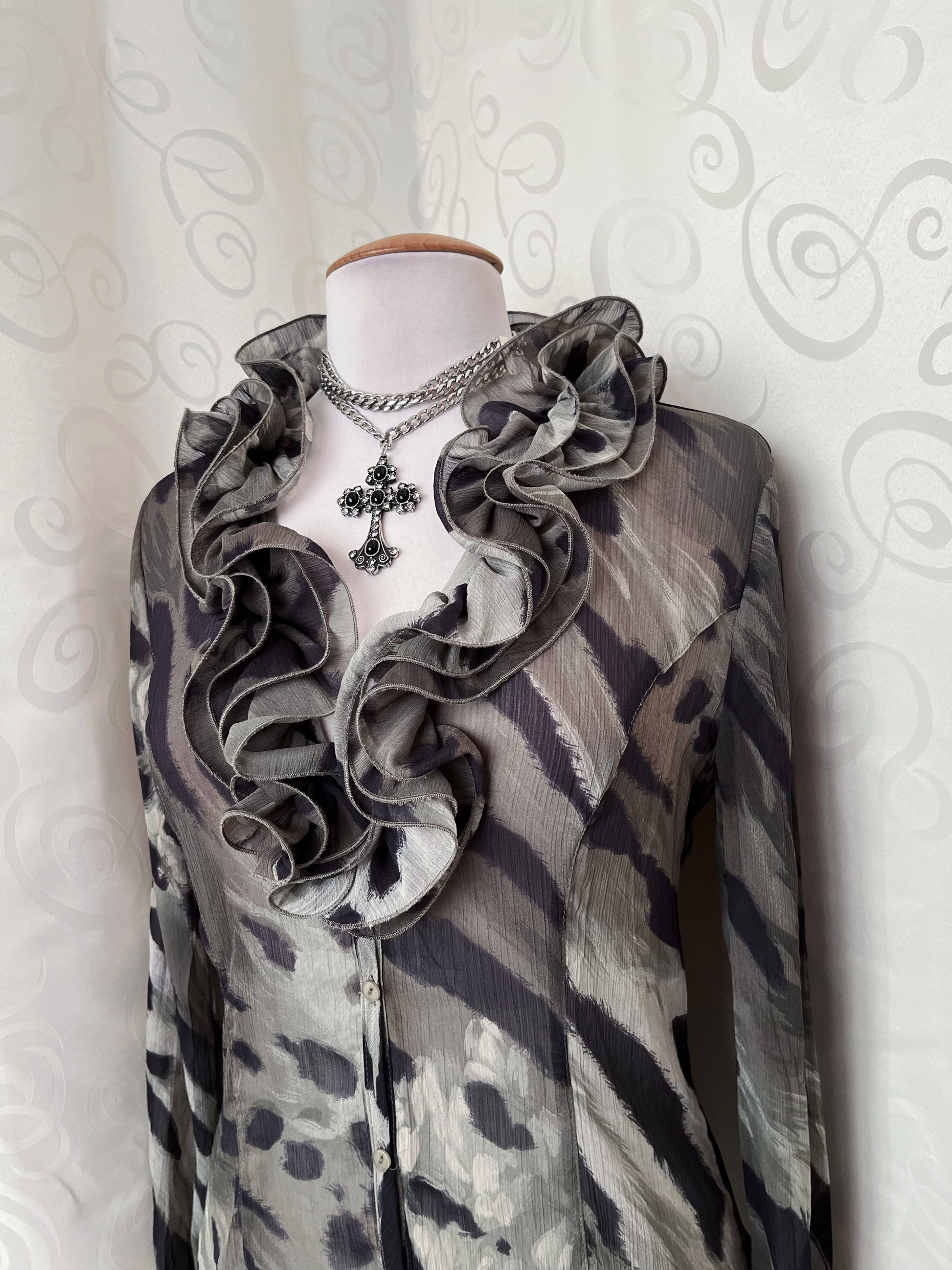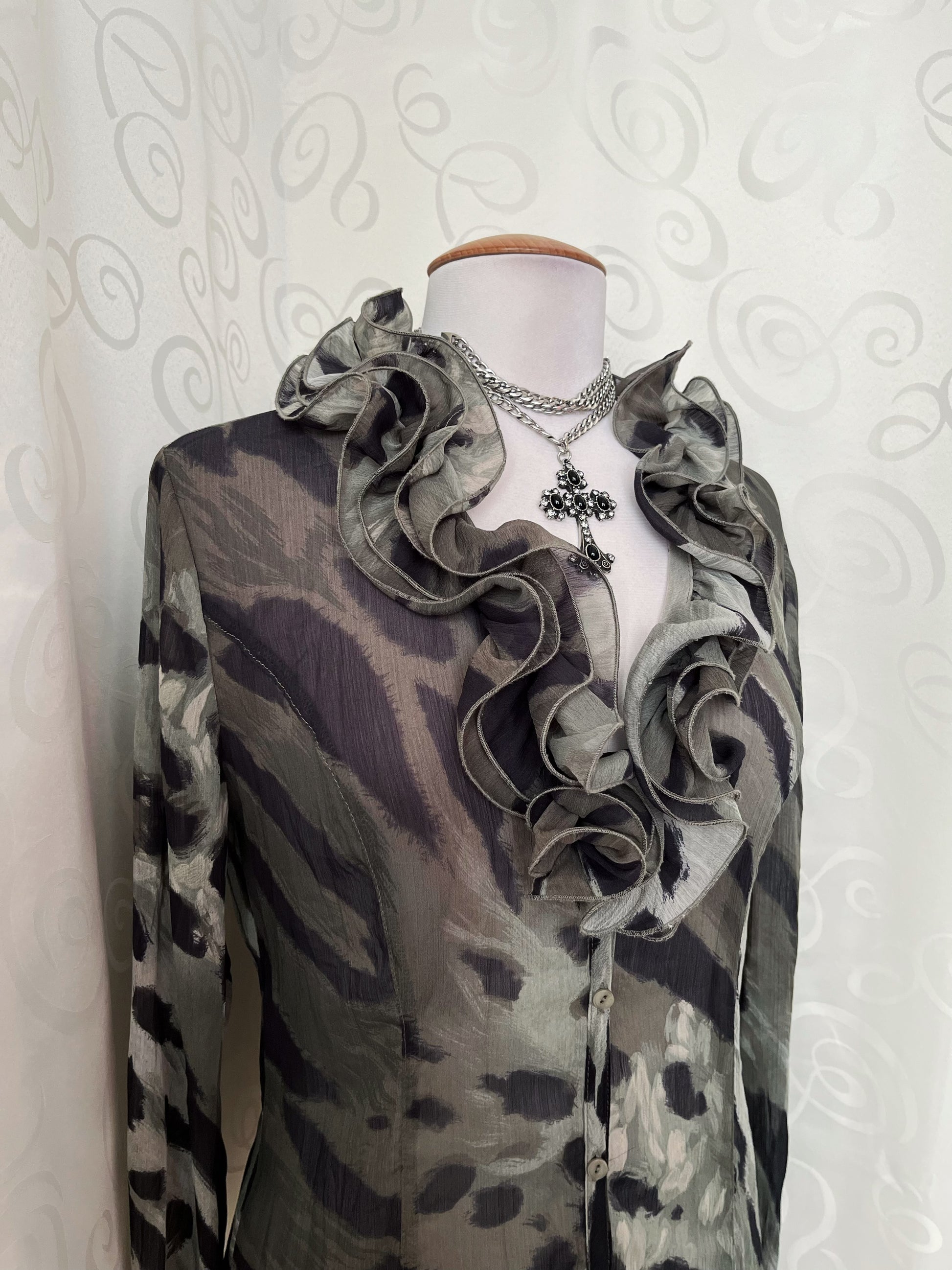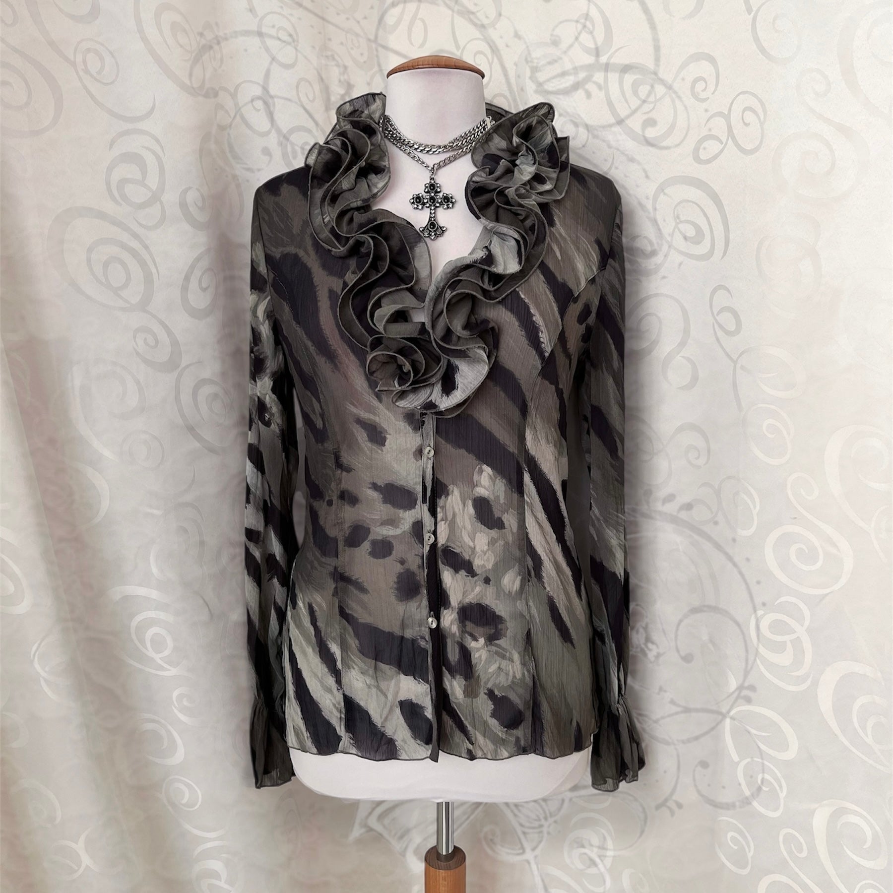 00’s whimsy fairy khaki mesh shirt with ruffle detail 🧚🏾