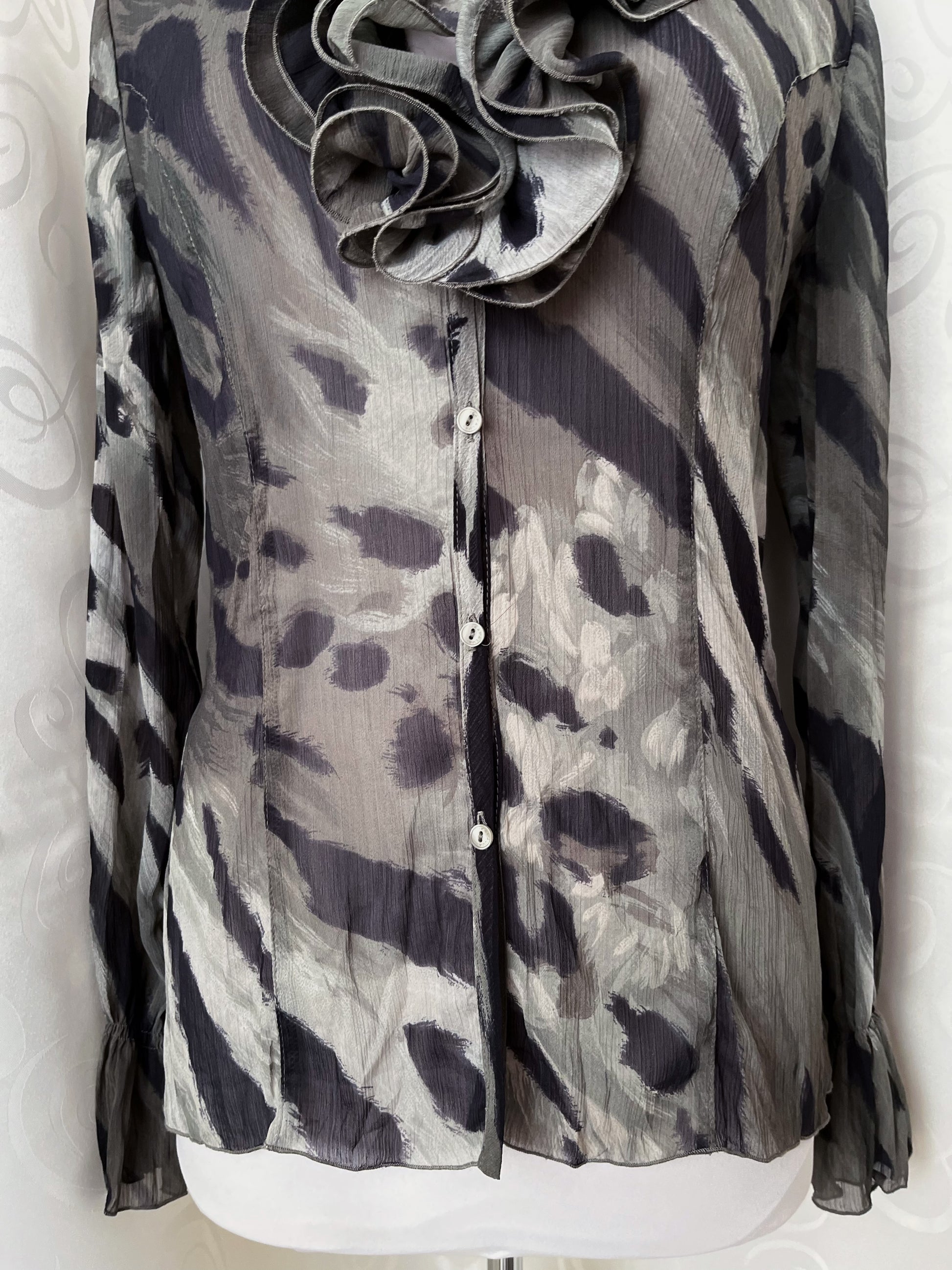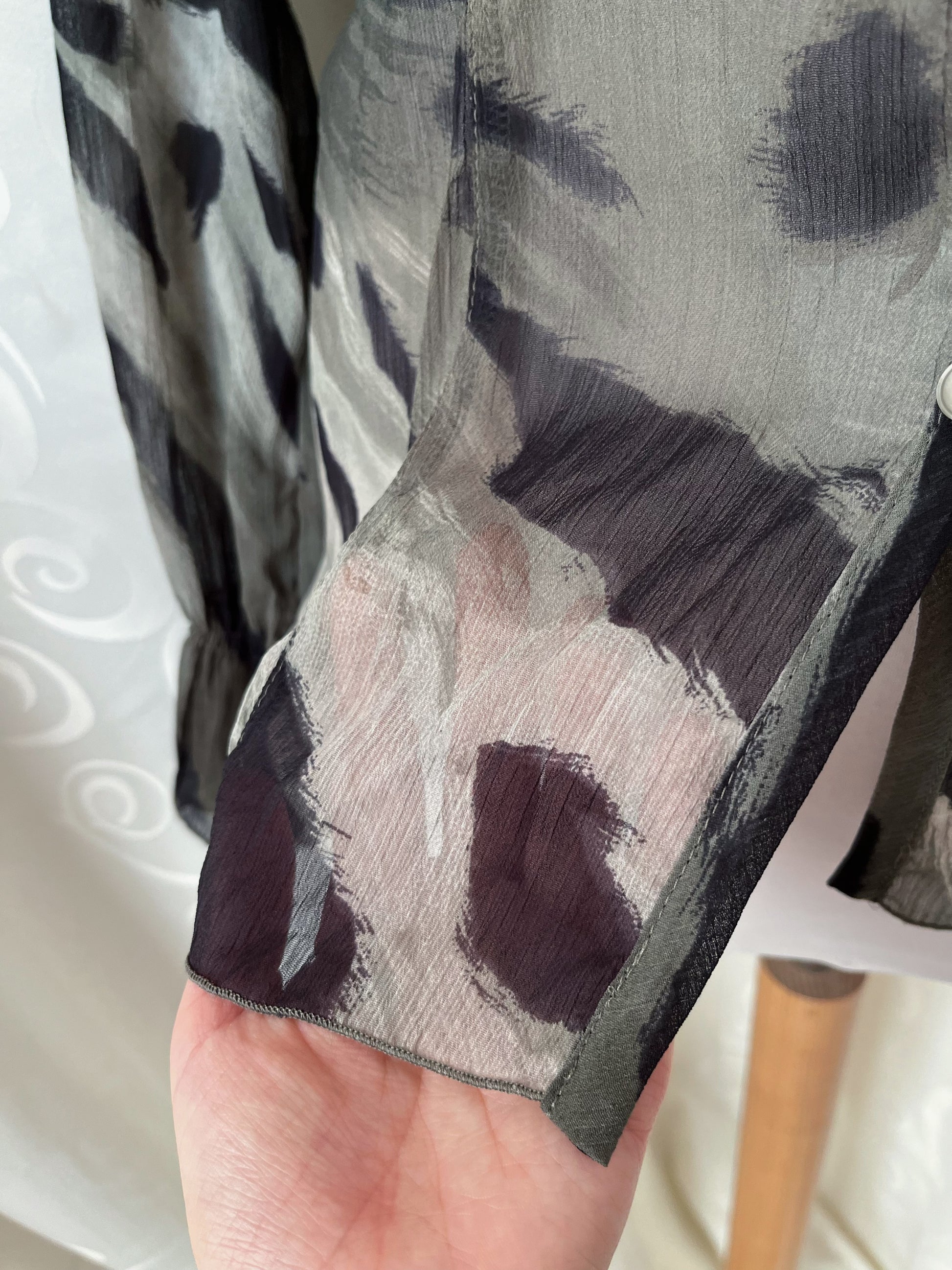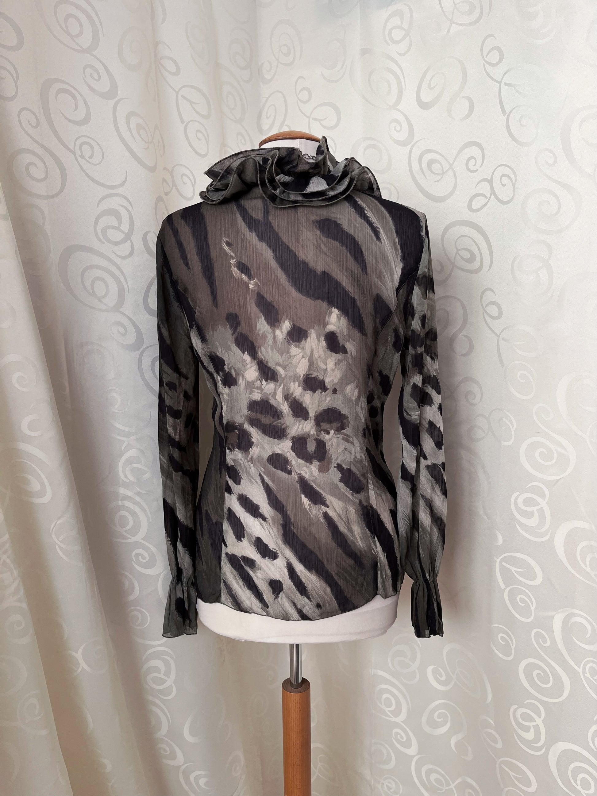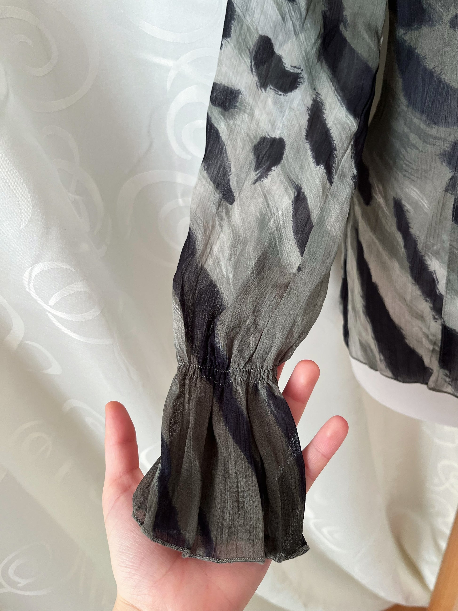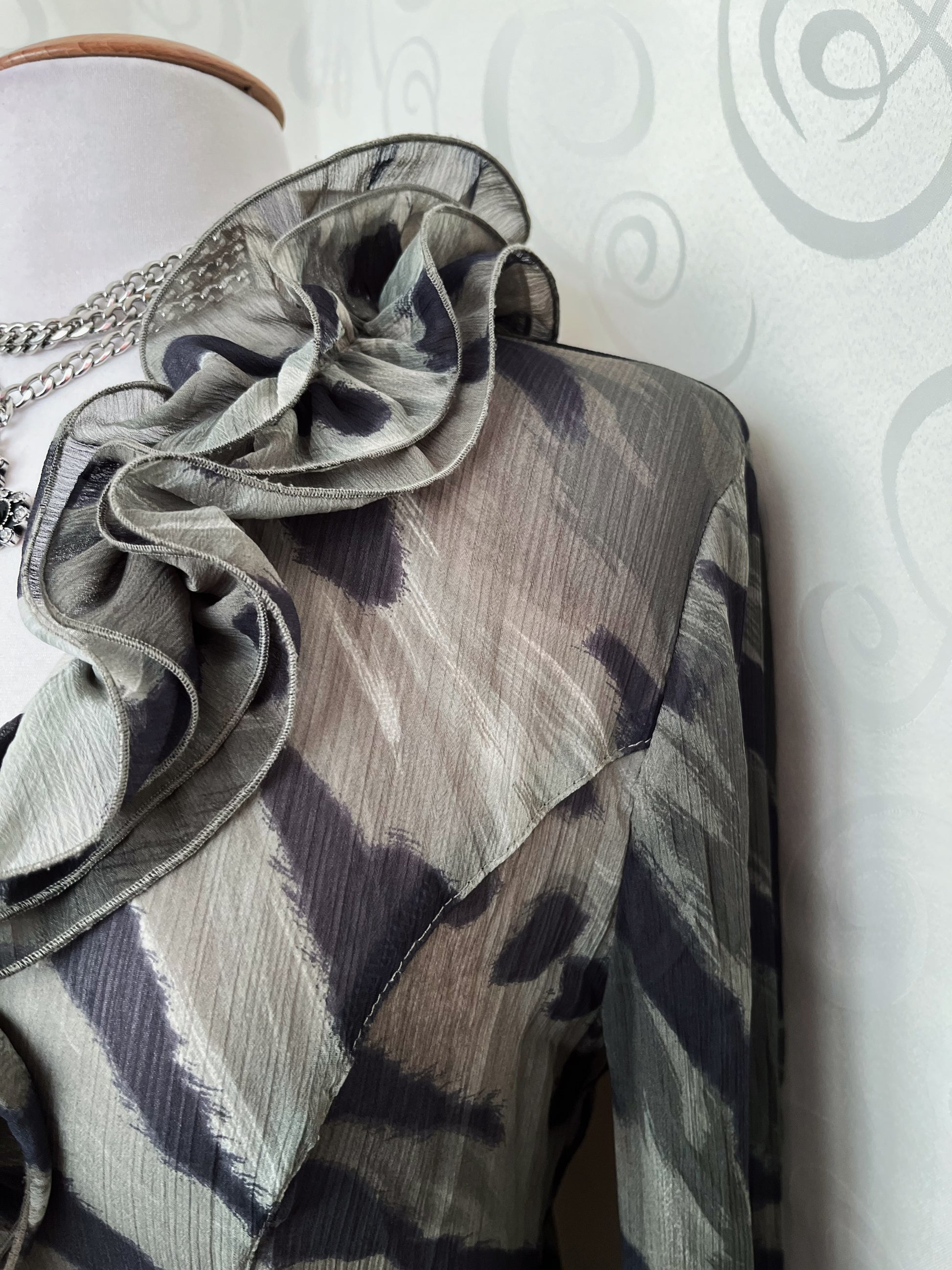 00’s whimsy fairy khaki mesh shirt with ruffle detail 🧚🏾