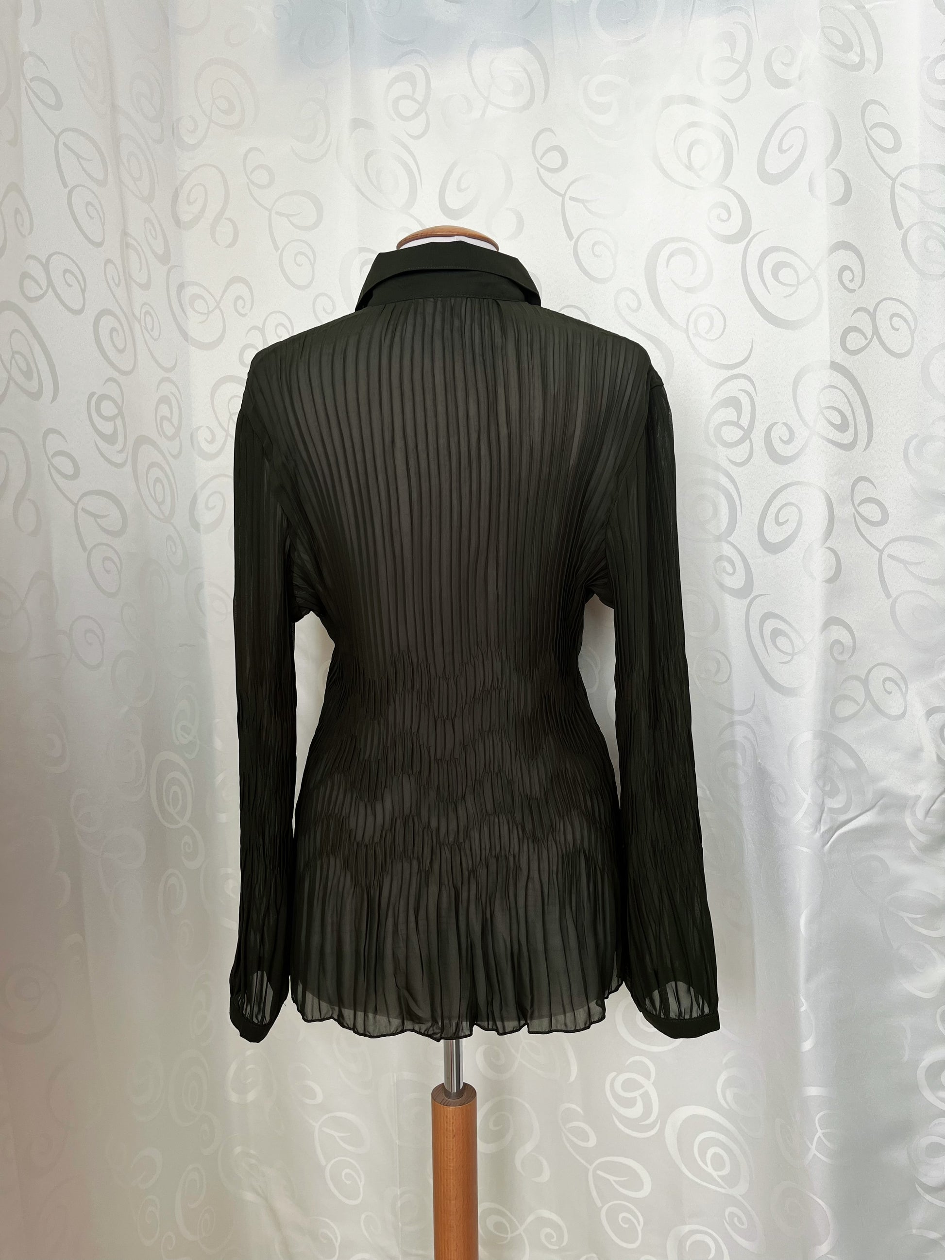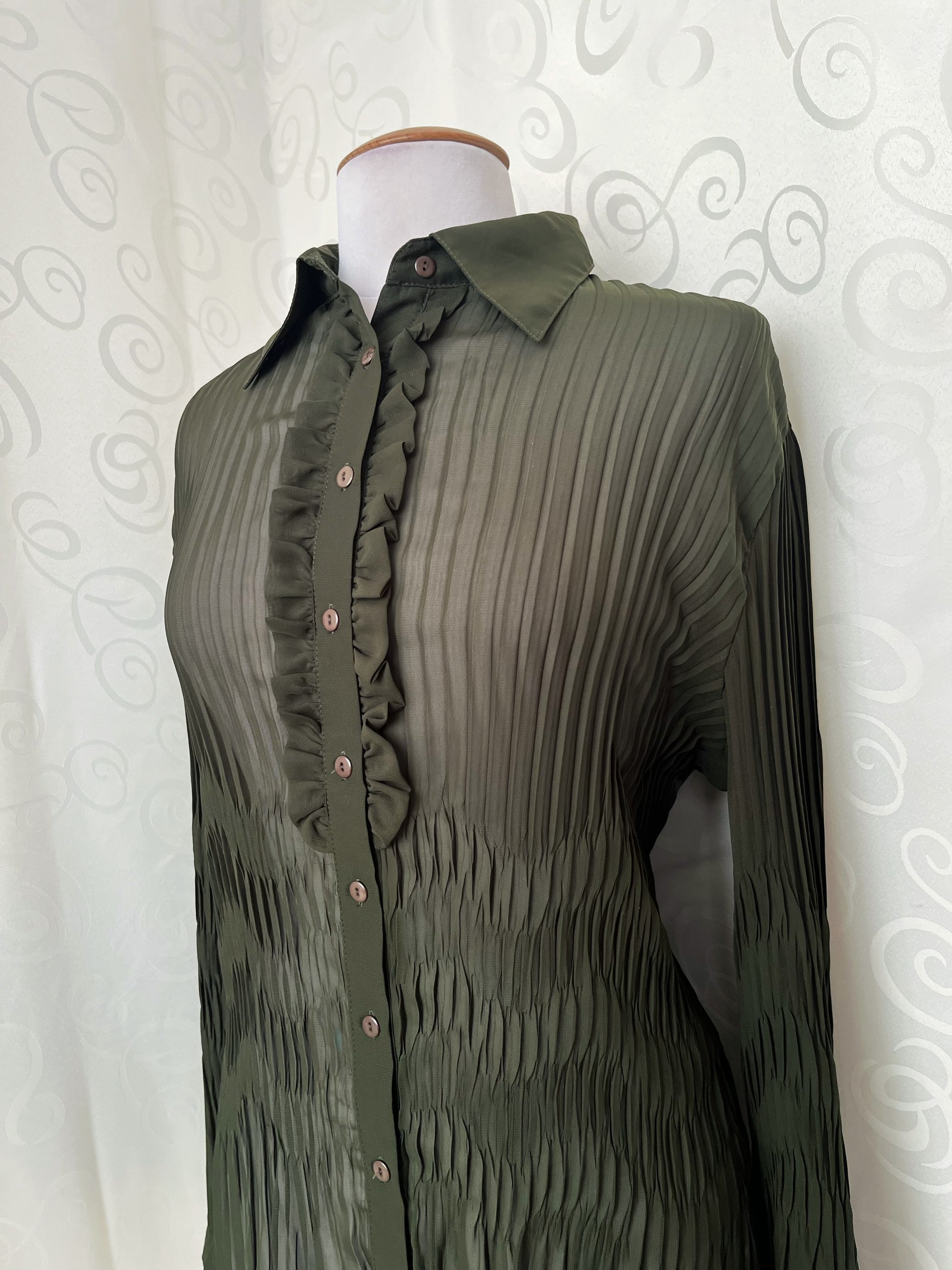 00’s whimsy victorian style mesh olive ruffle shirt 🕷️🌀