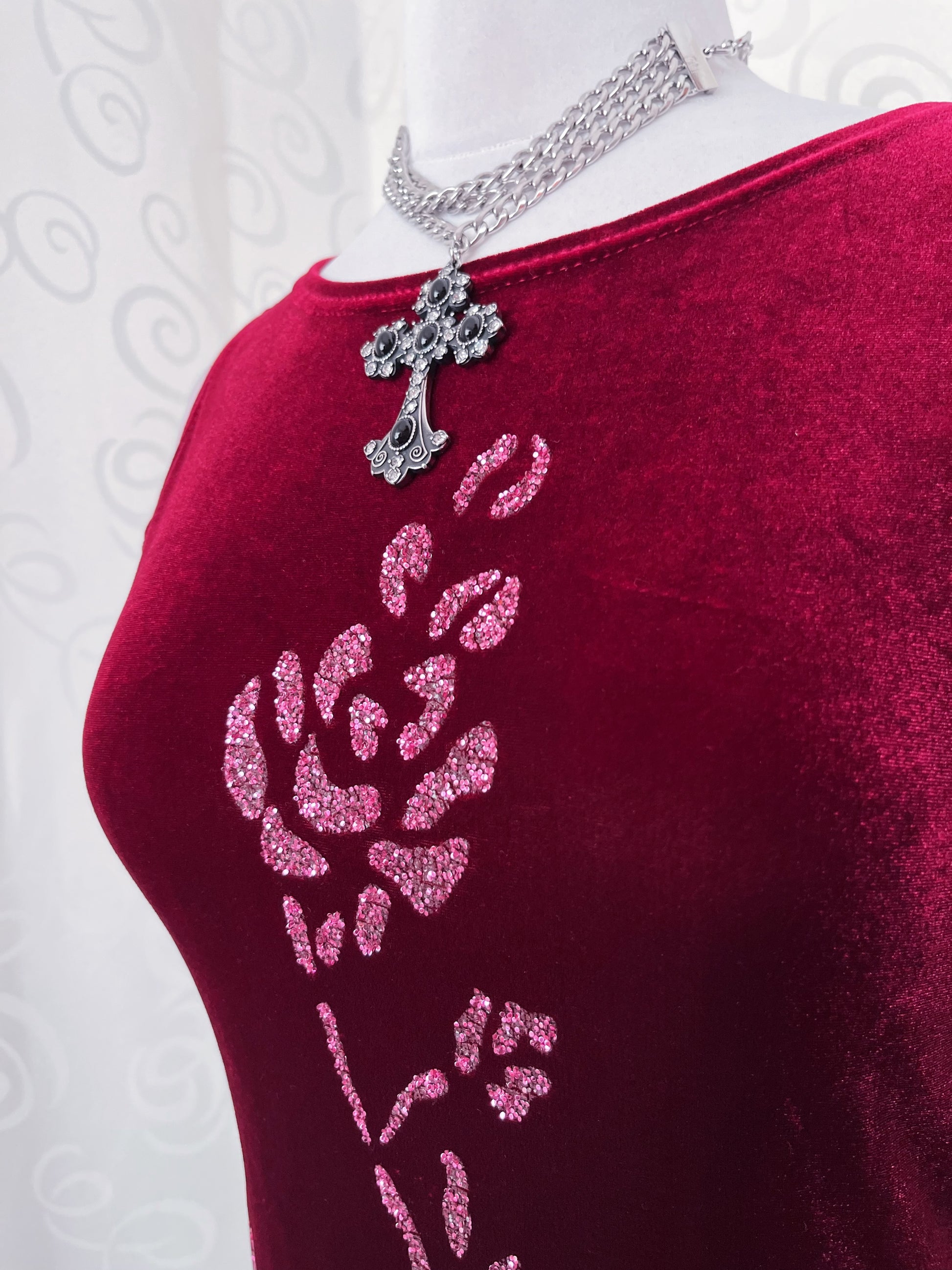 00’s whimsygoth burgundy velvet dress with embossed strass detail ❤️🌺