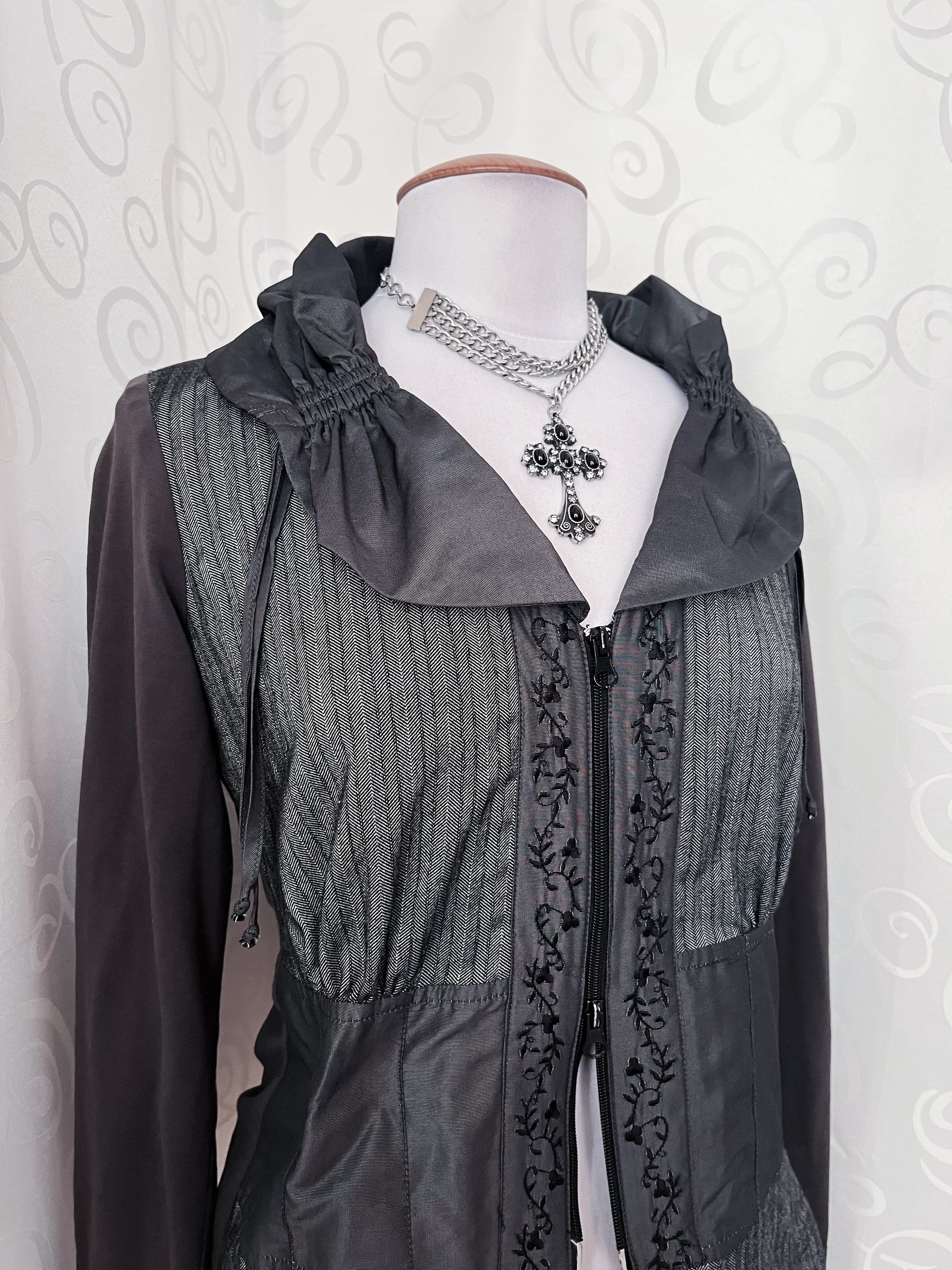 00’s whimsygoth grey zip-up jacket 🌀🪽