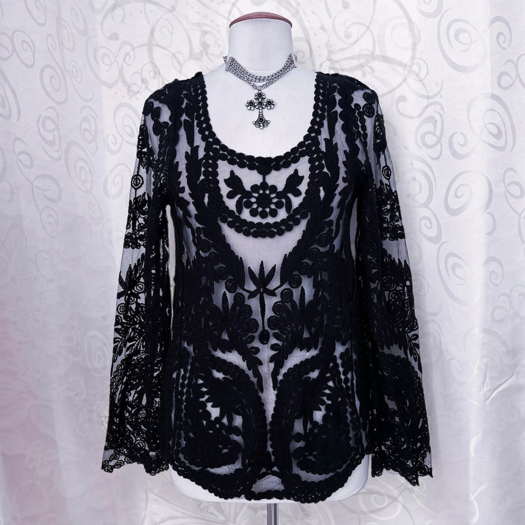 00’s whimsygoth see-through embroidered top 🦇🔮
