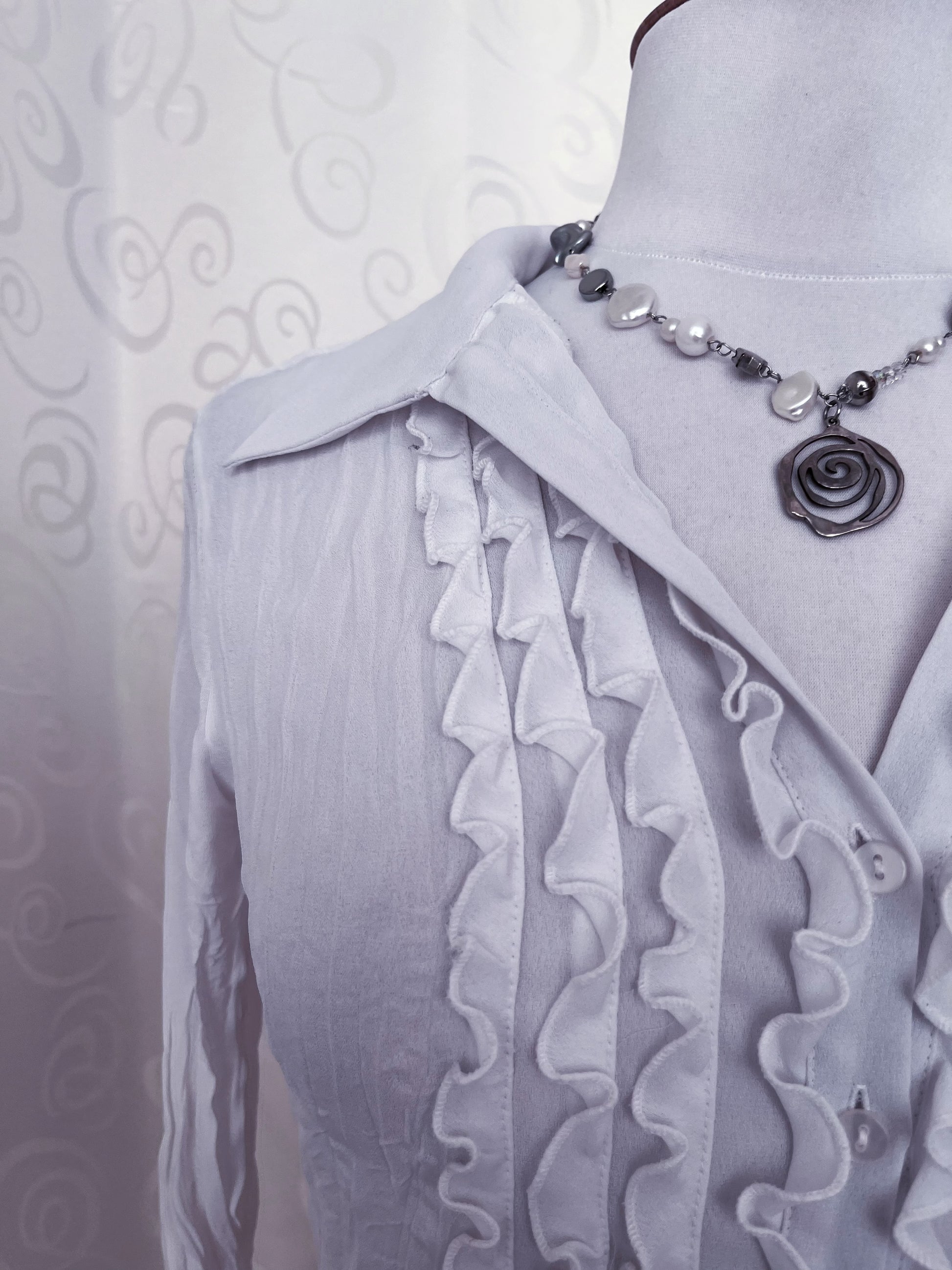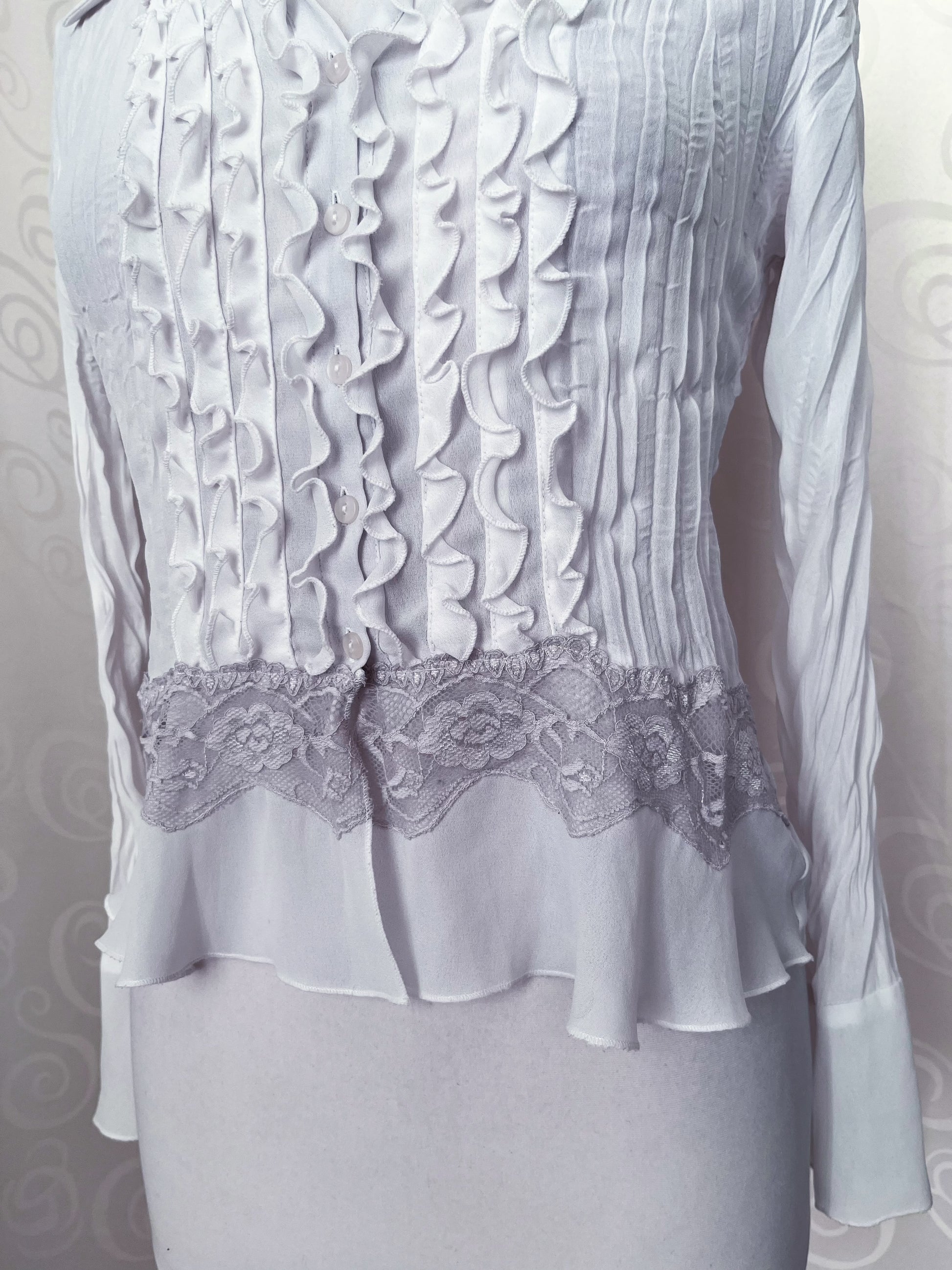 Angelic coquette ruffle mesh shirt with lace details 🪽