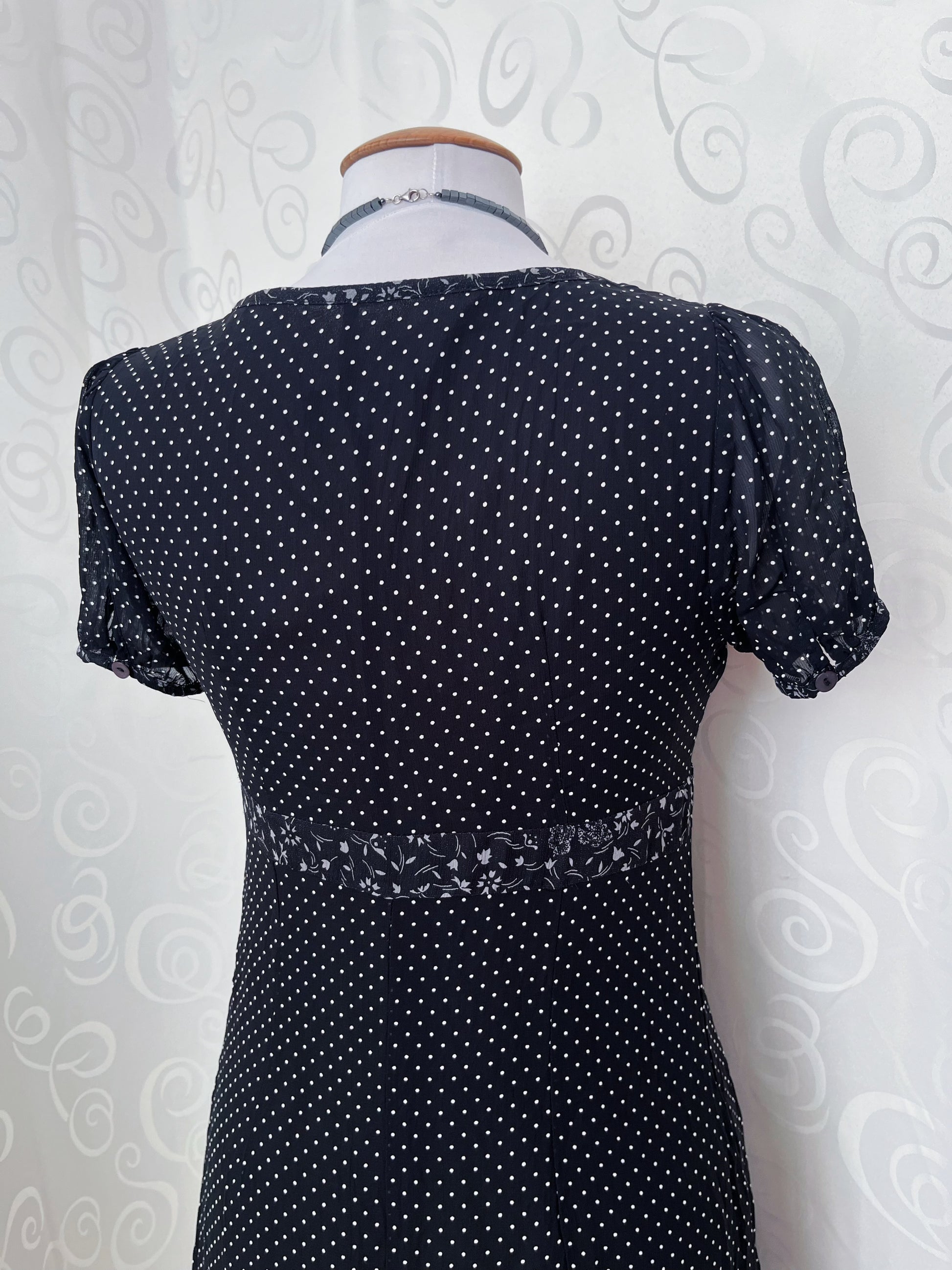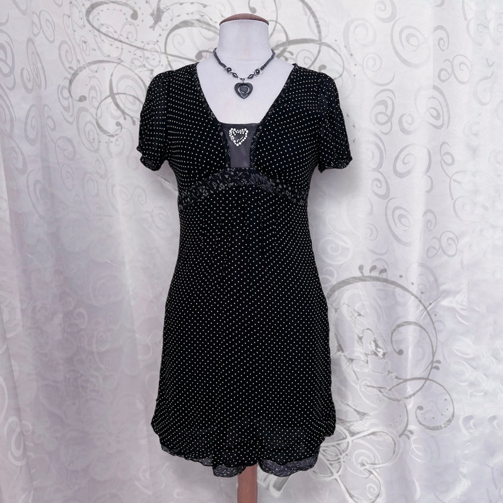Dark coquette polka dot silk & viscose dress with heart bead detail 🎹🎶