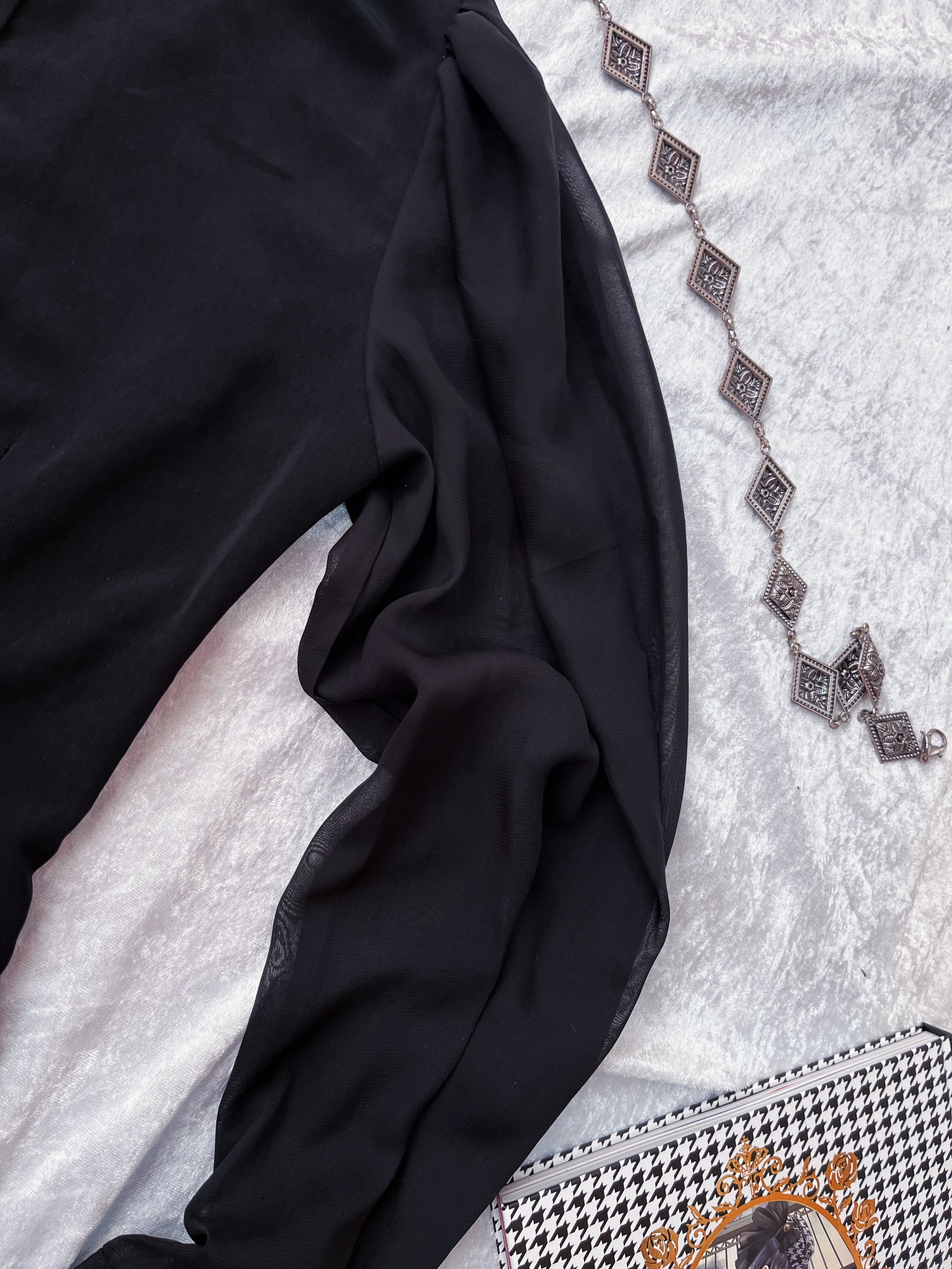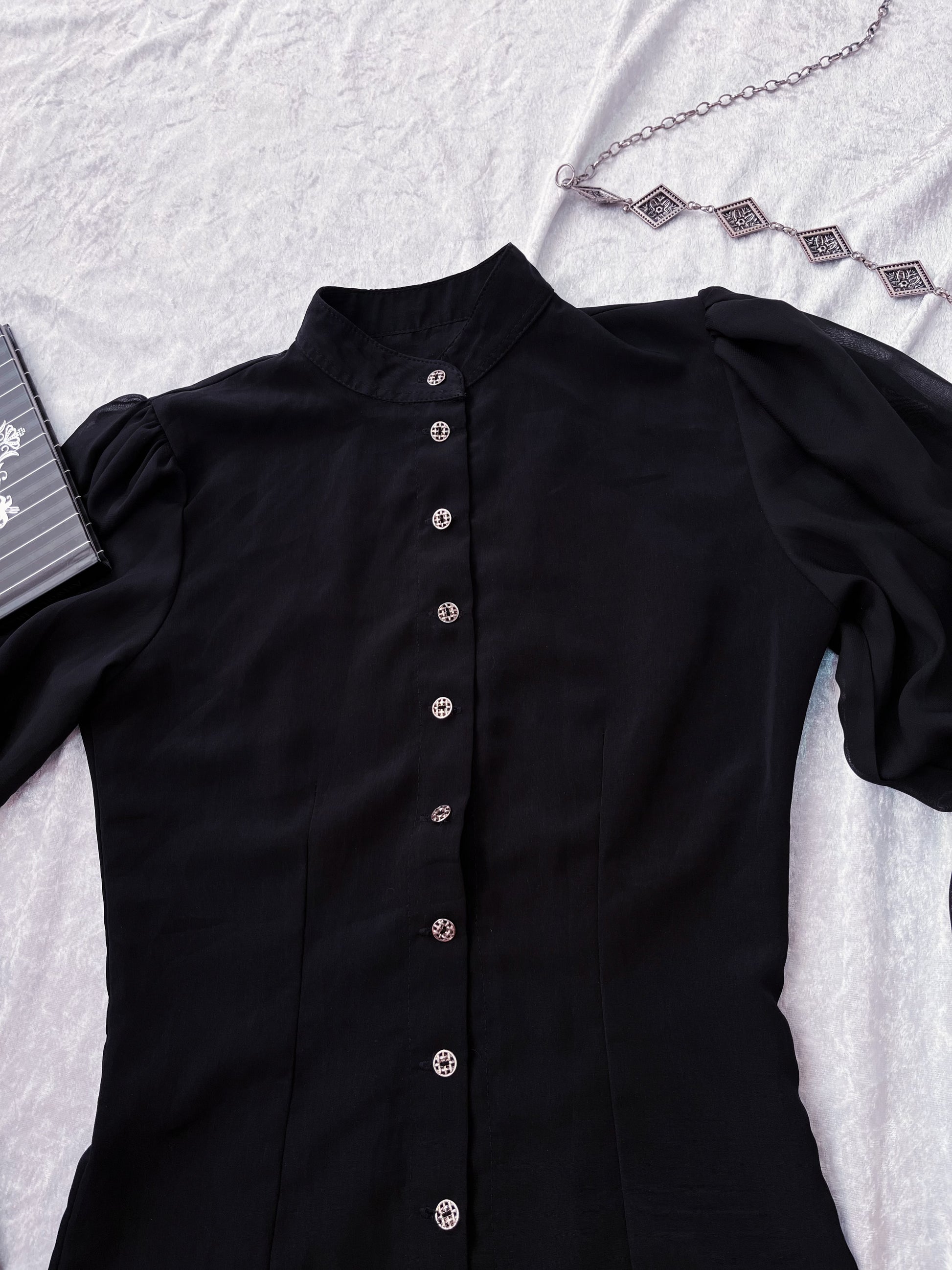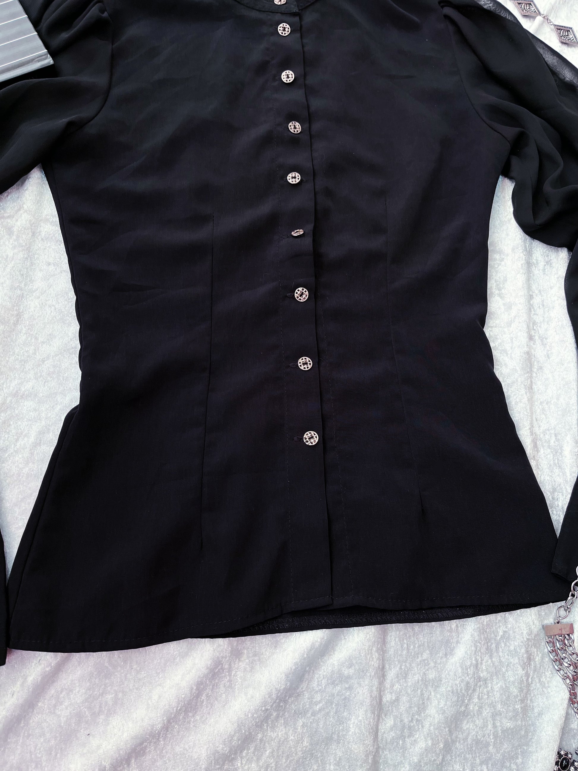 Gothic black shirt with beautiful mesh puff sleeves 🕷️🦇