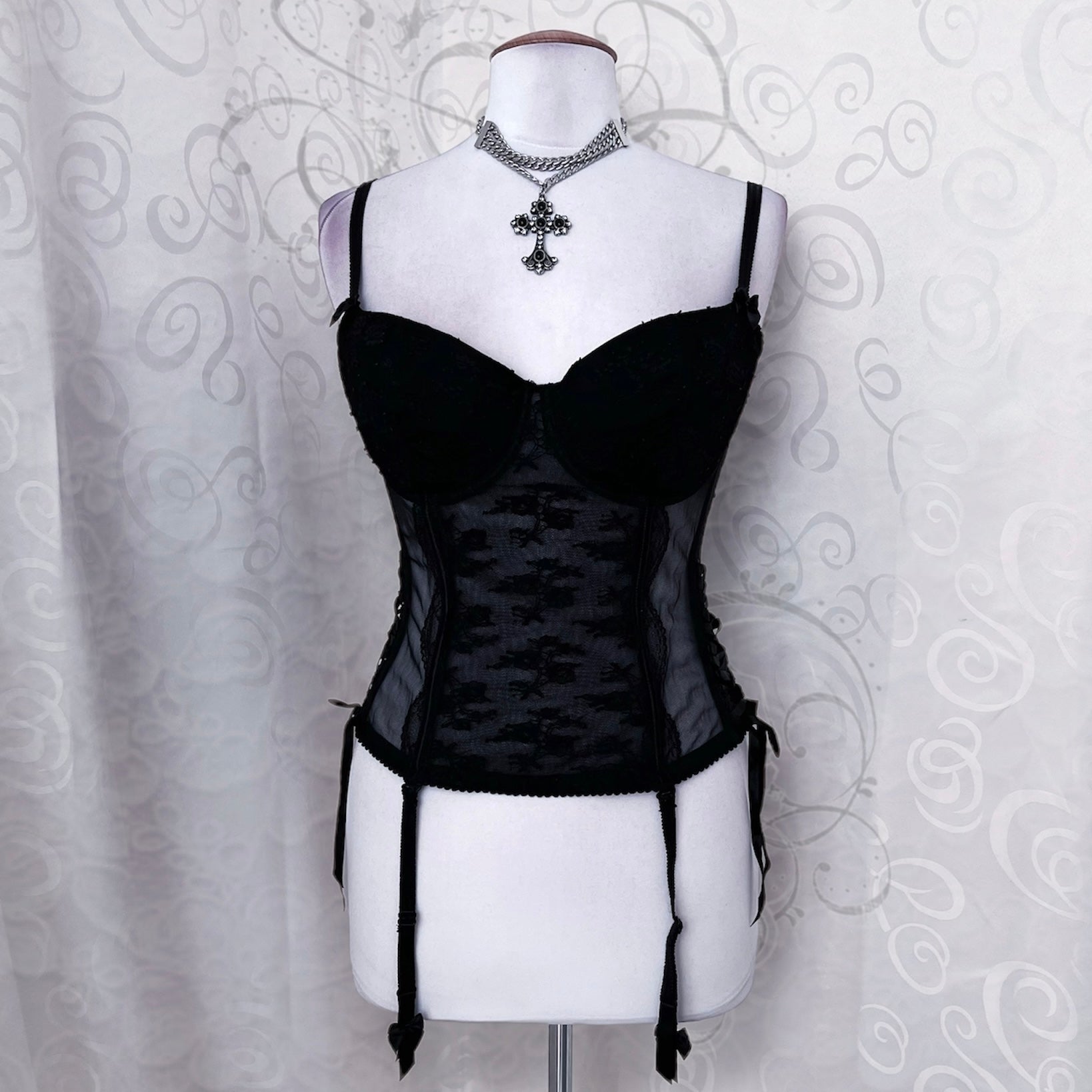 Gothic H&M black lacey corset with side laces 🕷️🕸️