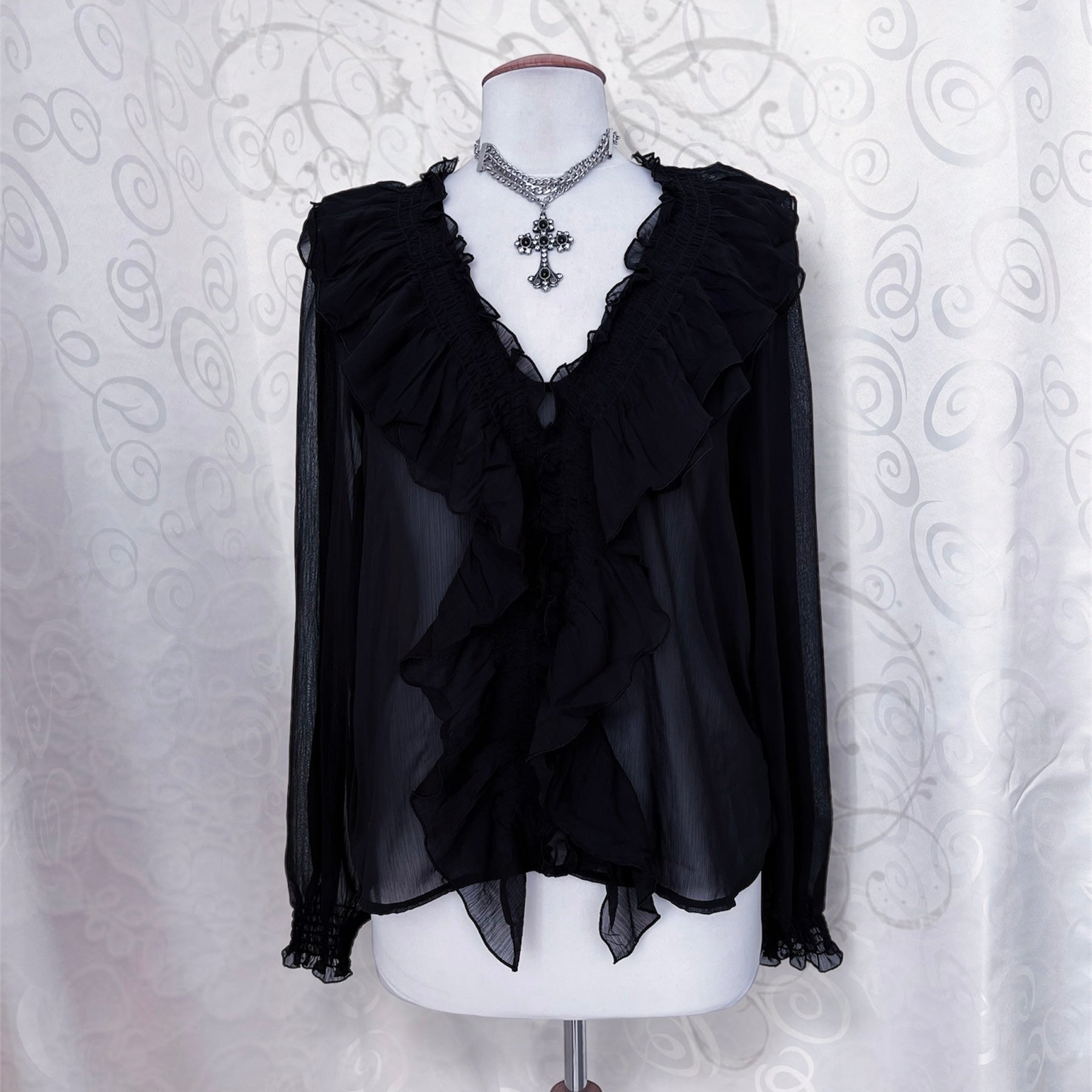 Gothic/Jirai Kei ruffle mesh shirt 🌀✨