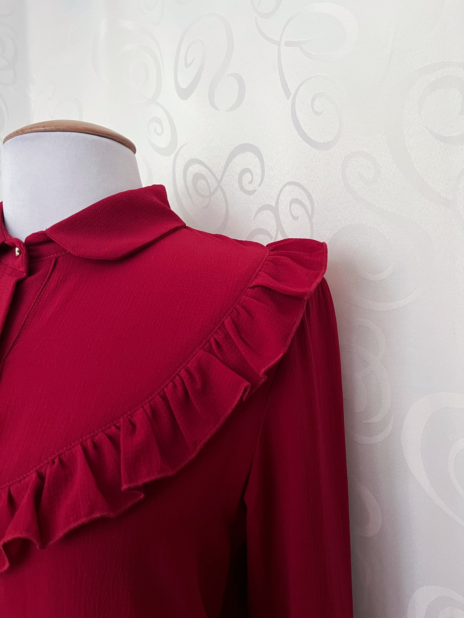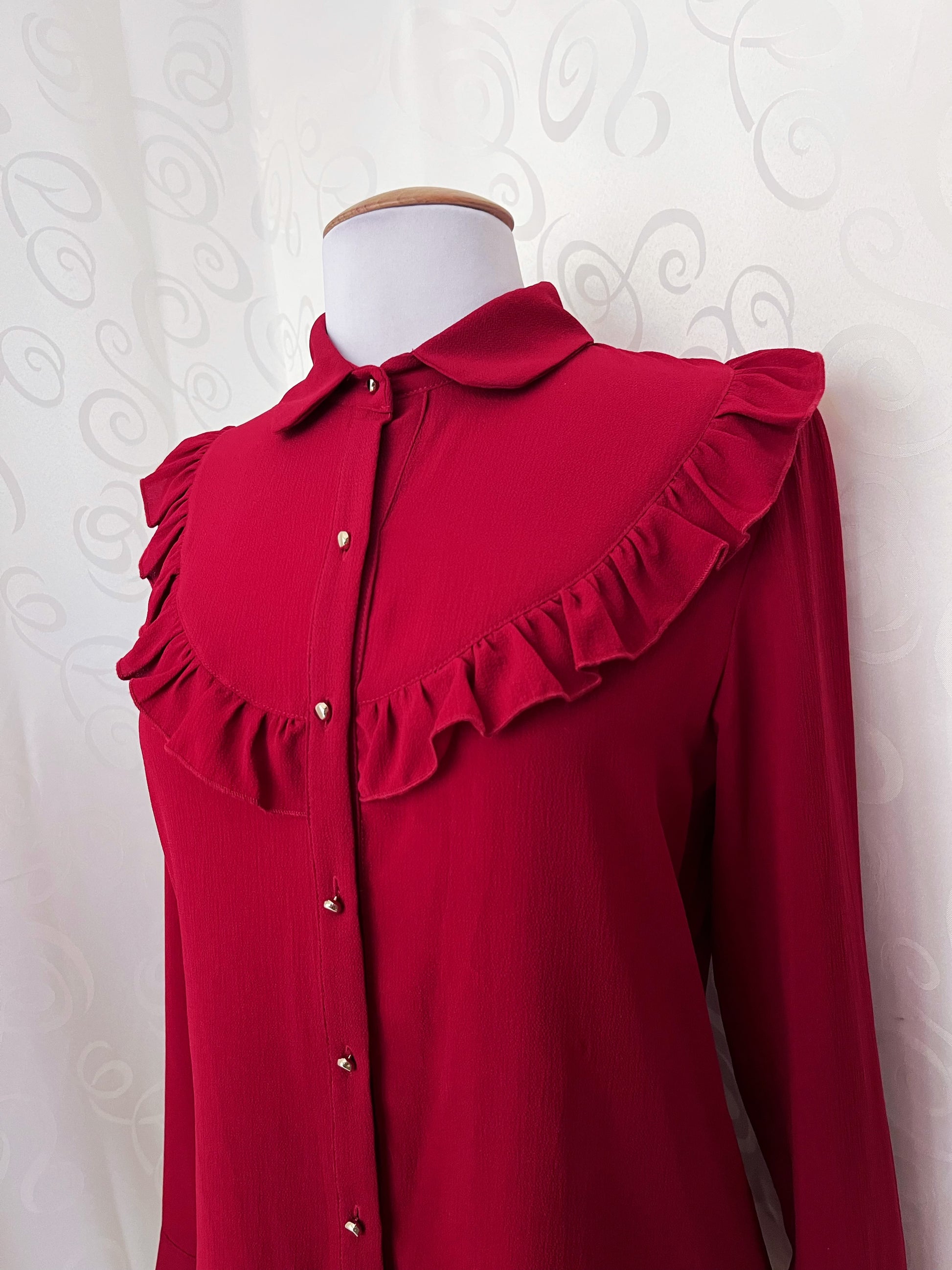 Gothic/Jirai Kei Wine Red ruffle shirt 🩸