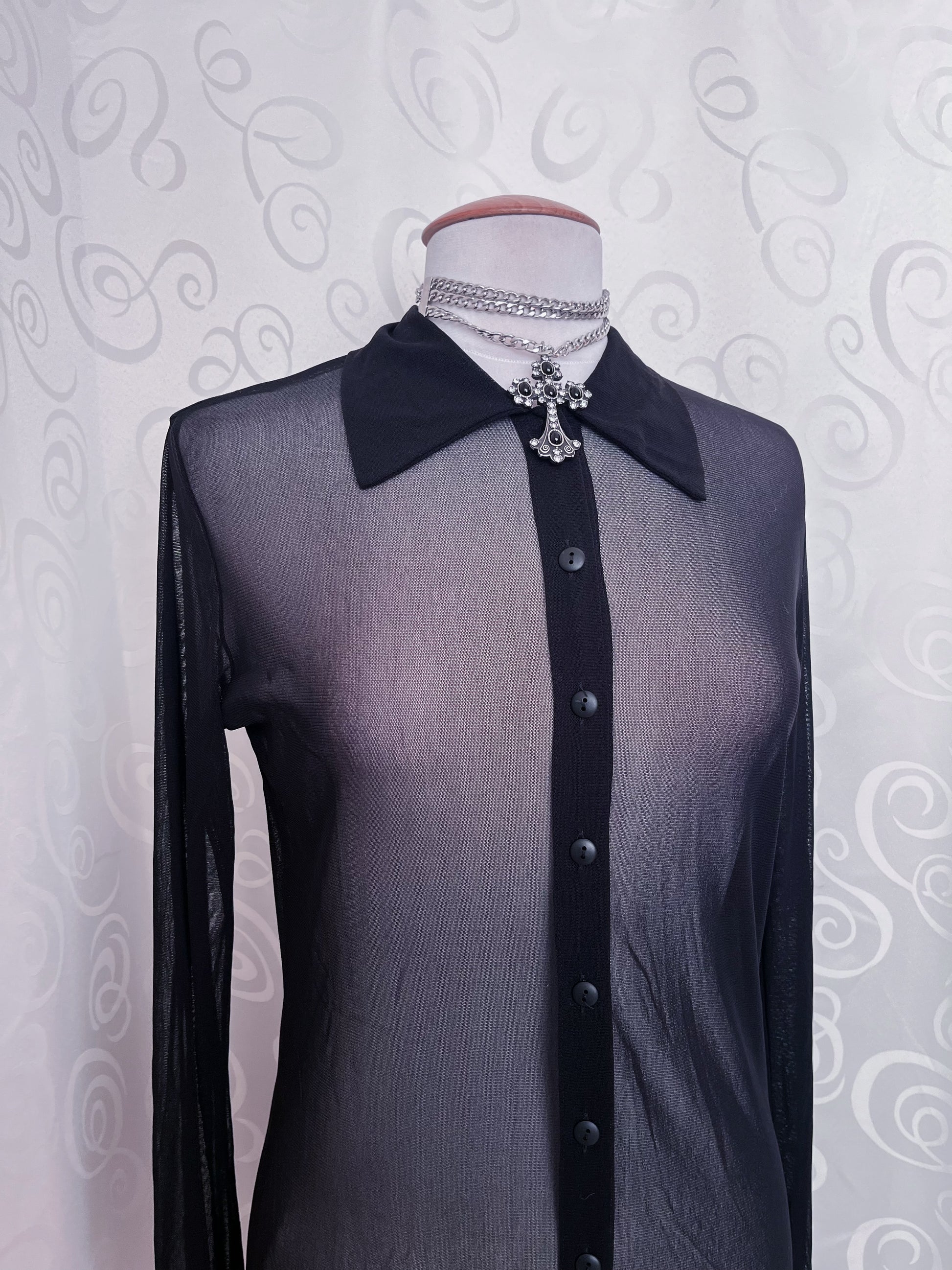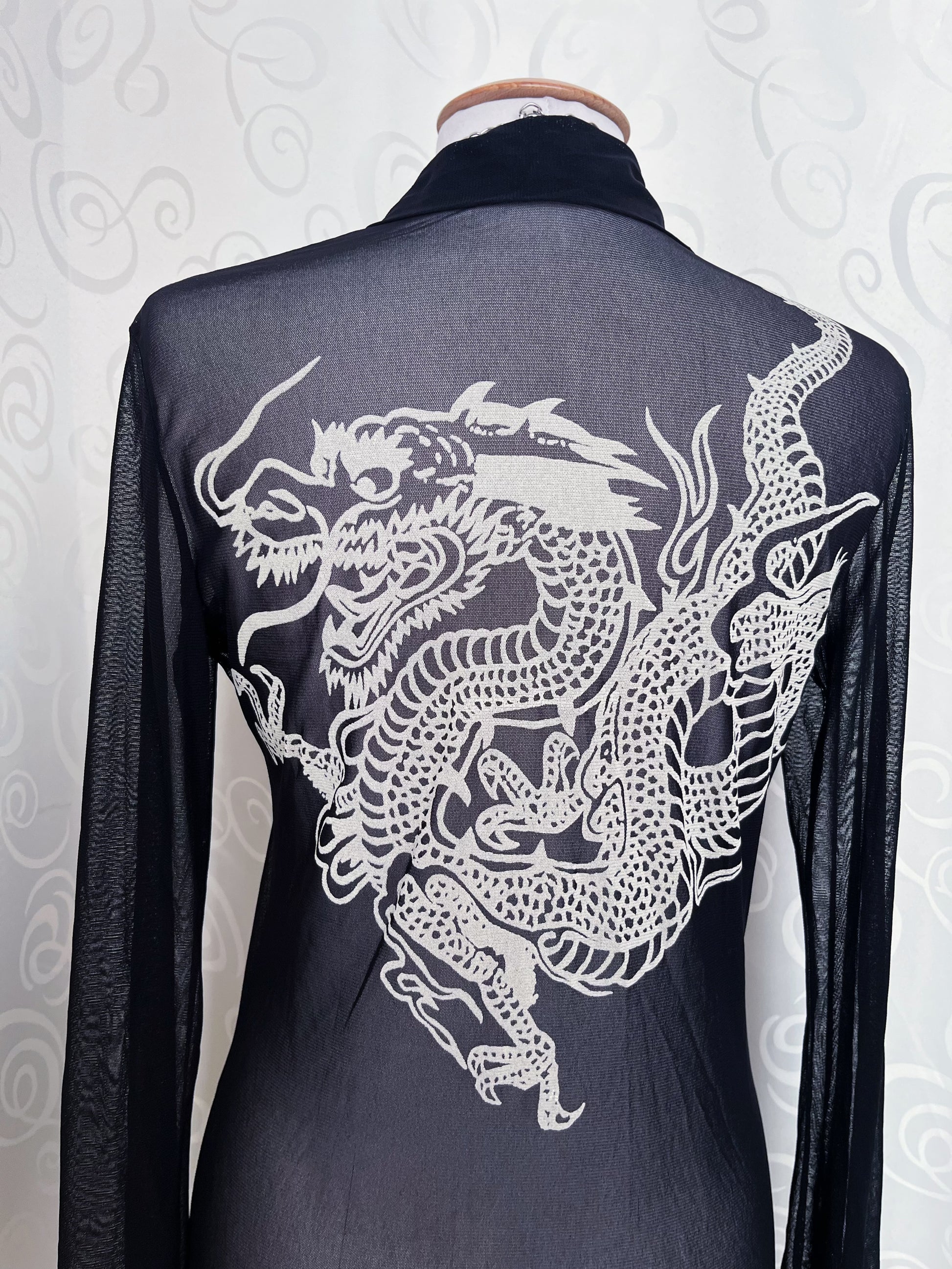 Gothic long mesh shirt/dress with dragon print on the back 🐉