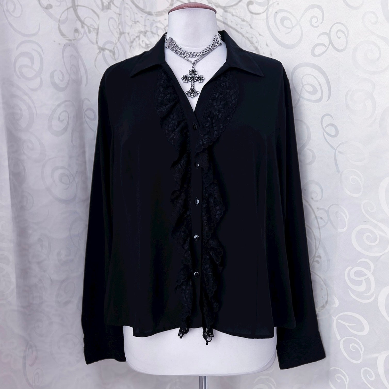 Vintage Your Sixth Sense Gothic victorian style ruffle black shirt 🕸️🕷️