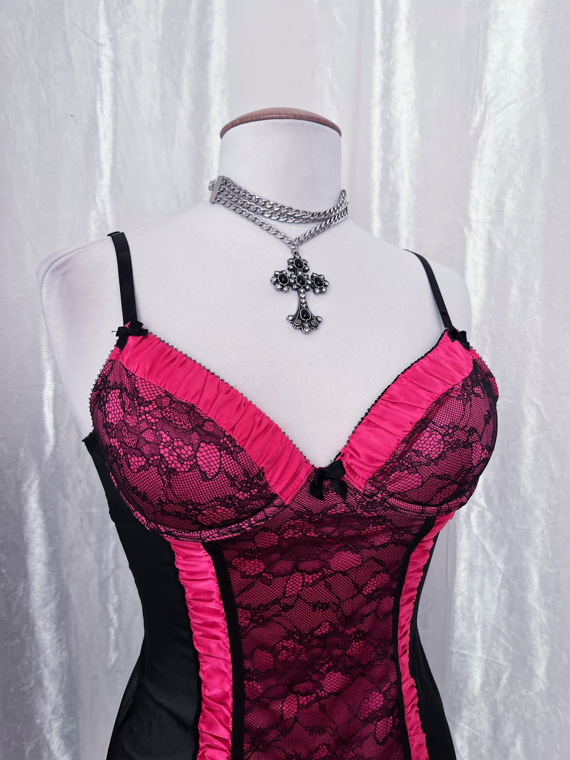 Whimsy hot pink mesh babydoll bustier 🫧🎀