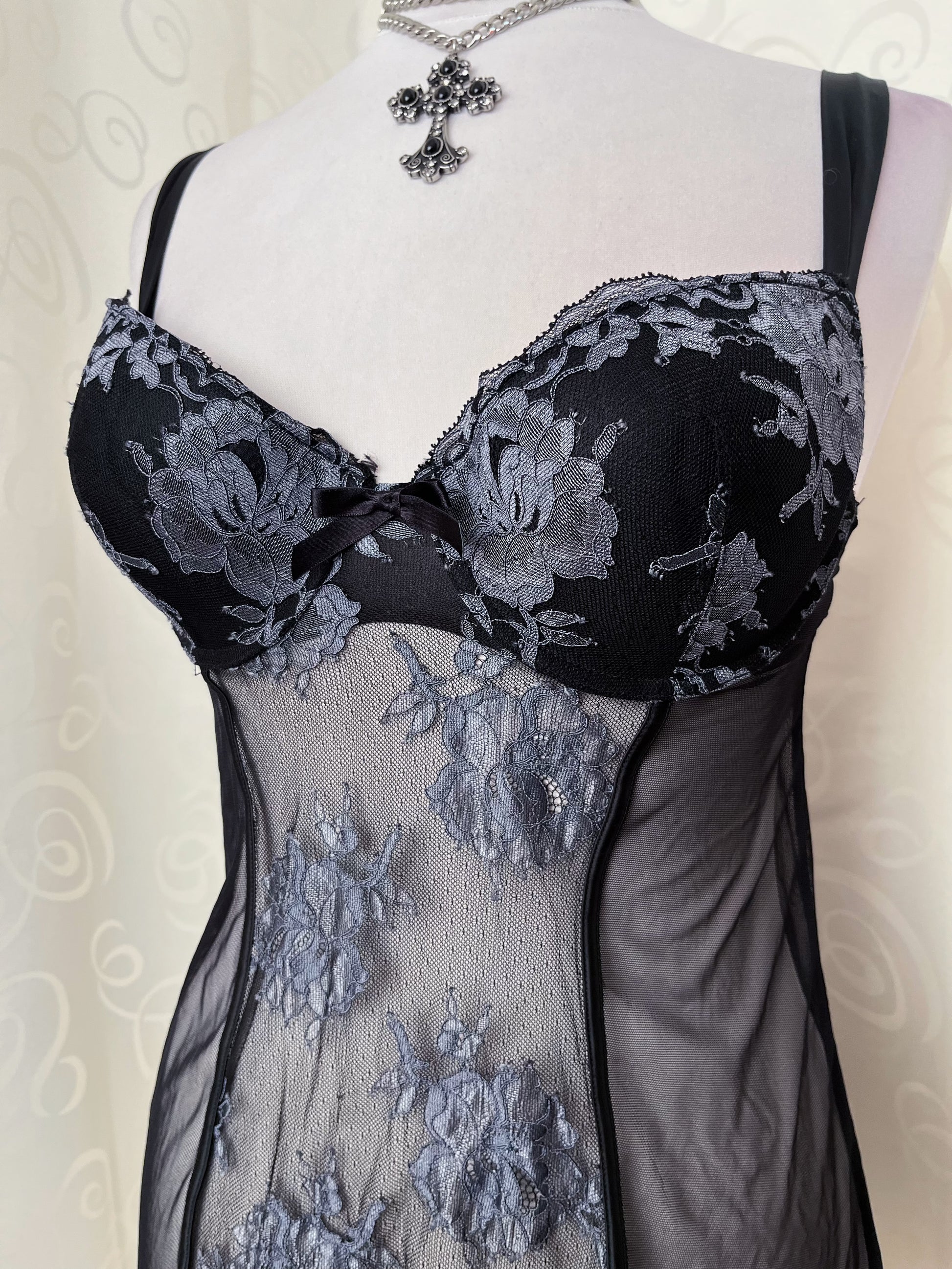 Whimsygoth black & grey mesh nightgown 🕷️